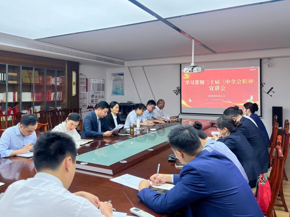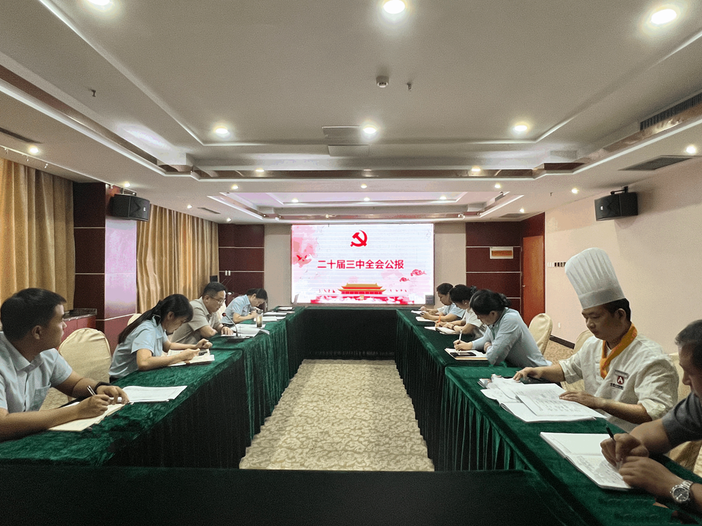 黨的二十屆三中全會(huì)是在以中國式現(xiàn)代化全面推進(jìn)強(qiáng)國建設(shè)、民族復(fù)興偉業(yè)的關(guān)鍵時(shí)期召開的一次十分重要的會(huì)議。連日來,酒店公司各單位把學(xué)習(xí)好、宣傳好、貫徹好黨的二十屆三中全會(huì)精神作為當(dāng)前和今后一個(gè)時(shí)期的重大政治任務(wù),以各種形式深入傳達(dá)學(xué)習(xí)貫徹黨的二十屆三中全會(huì)精神,并結(jié)合酒店工作實(shí)際,謀思路、話舉措,切實(shí)推動(dòng)黨的二十屆三中全會(huì)精神入腦入心、落地生根。
