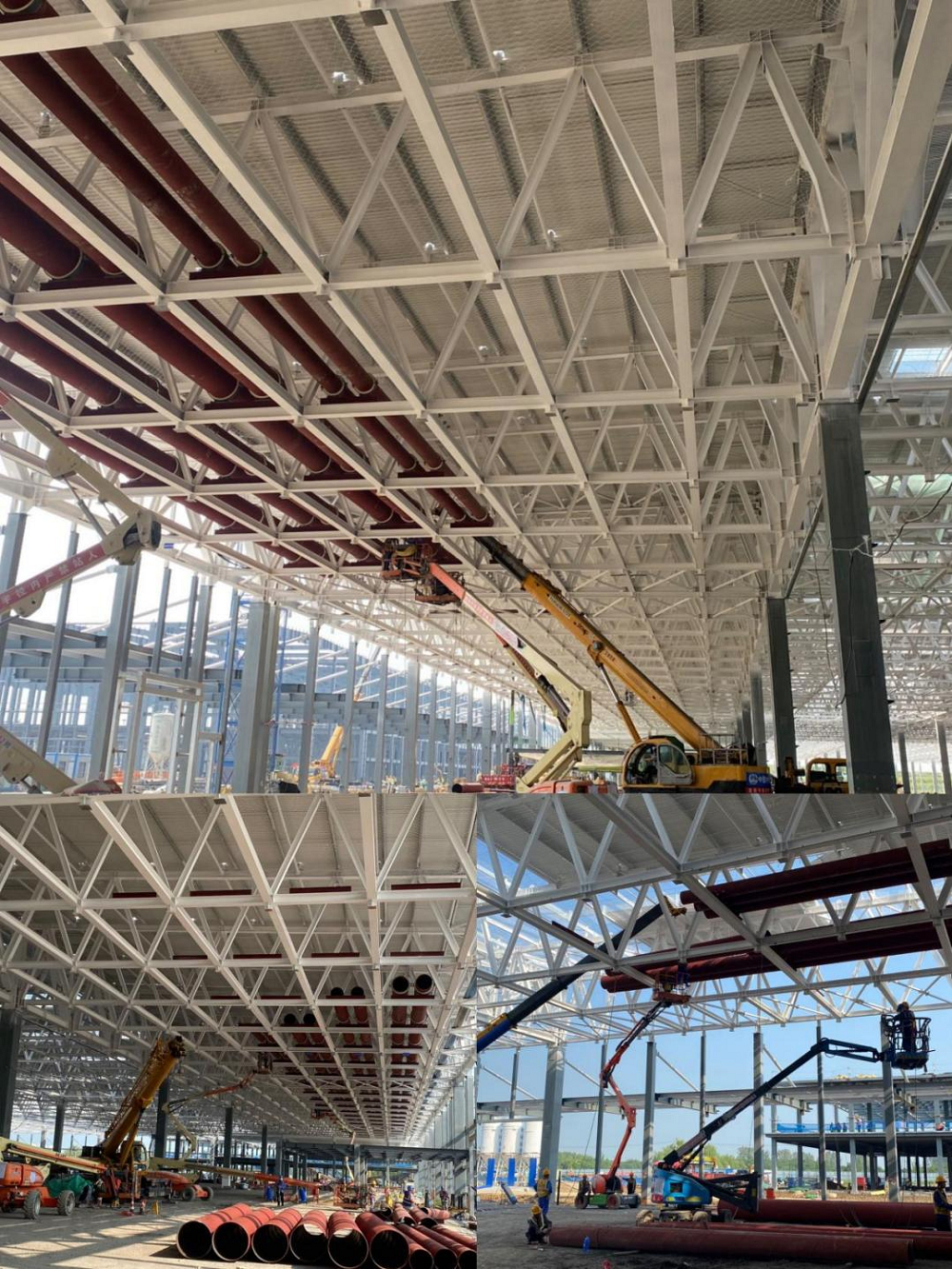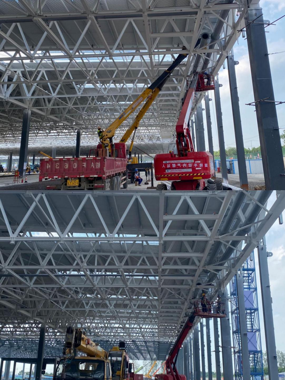該項(xiàng)目工期緊、任務(wù)重,項(xiàng)目部開足馬力搶抓節(jié)點(diǎn),充分合理調(diào)配人、材、機(jī)及資金等資源。為搶抓晴好天氣,錯峰高溫時段,管理人員靠前指揮,作業(yè)人員并聯(lián)推進(jìn)、多點(diǎn)開花,加班加點(diǎn)、挑燈夜戰(zhàn)。在確保安全質(zhì)量的前提下,優(yōu)化施工方案,緊跟鋼結(jié)構(gòu)及土建單位的施工進(jìn)度“見縫插針”,全力推進(jìn)本項(xiàng)目的建設(shè)進(jìn)度。