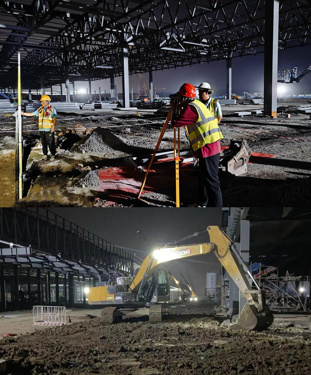 預(yù)埋排水管標(biāo)高測量夜間施工