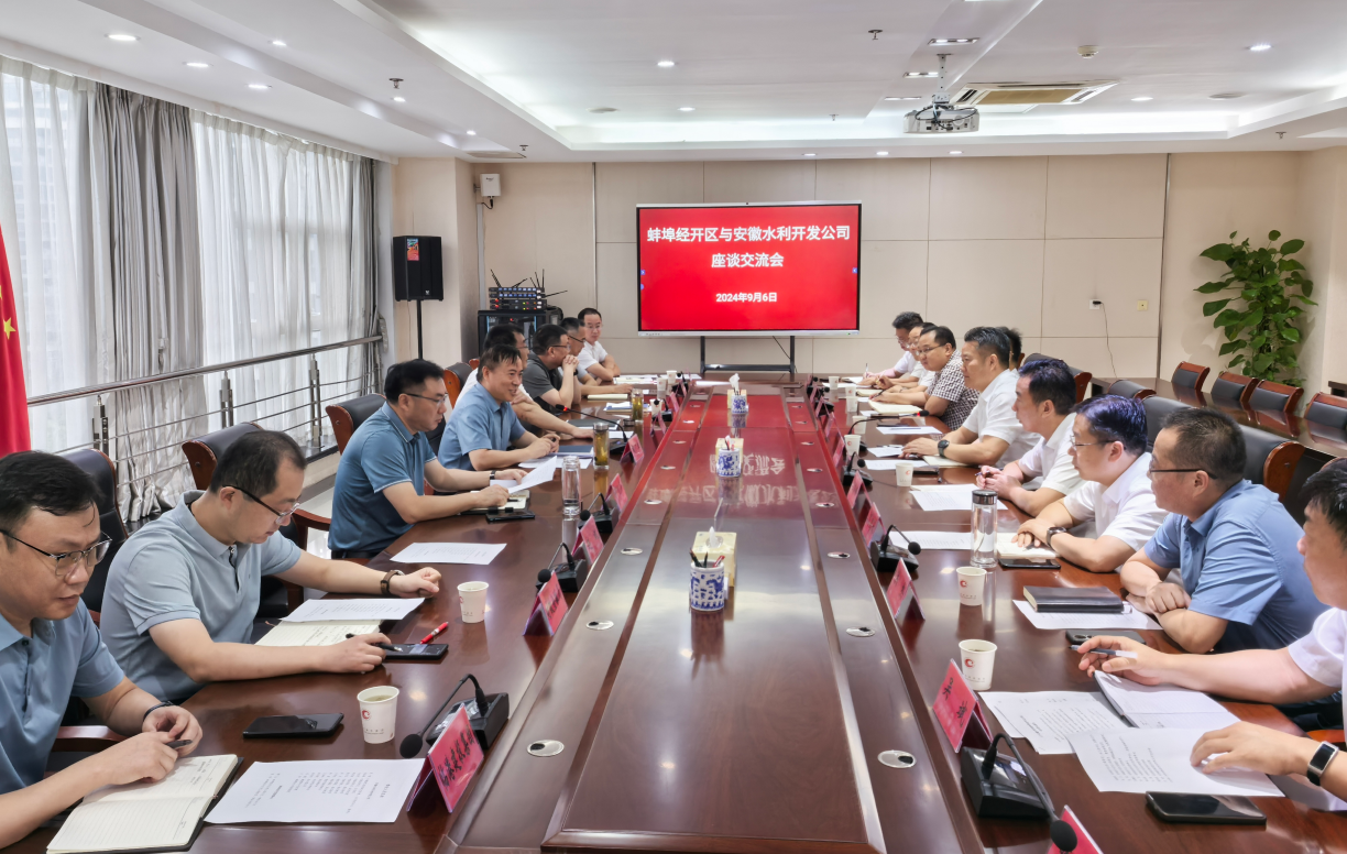安徽水利領(lǐng)導(dǎo)班子成員,辦公室、市場開發(fā)部、投資發(fā)展部、財務(wù)部負責(zé)人,城建公司主要負責(zé)同志;蚌埠經(jīng)開區(qū)領(lǐng)導(dǎo)趙凱、強鵬舉、趙斌,建投集團、投促局、建設(shè)局等有關(guān)部門和單位負責(zé)人參加會談。