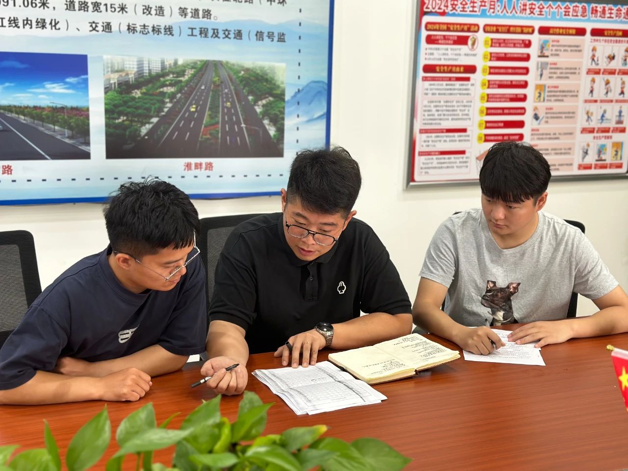 在進(jìn)入項(xiàng)目不到一個月的時間里,師傅帶我們?nèi)ミ^現(xiàn)場、驗(yàn)過管材質(zhì)量、了解了項(xiàng)目的整體施工進(jìn)度,也教過我們施工規(guī)范標(biāo)準(zhǔn)的要求,如何繪制現(xiàn)場施工圖紙、使用施工相關(guān)軟件和項(xiàng)目管理系統(tǒng)。最讓我們記憶猶新的還是那次業(yè)主來項(xiàng)目檢查。正午的太陽火辣辣的,還沒走到施工現(xiàn)場,我們就已汗流浹背。師傅卻渾然不覺,向業(yè)主詳細(xì)介紹管道基坑的施工進(jìn)度、邊坡支護(hù)的施工方案?;貋淼臅r間我們已記不清,唯有師傅那被汗水浸透的衣背讓我們至今難忘。