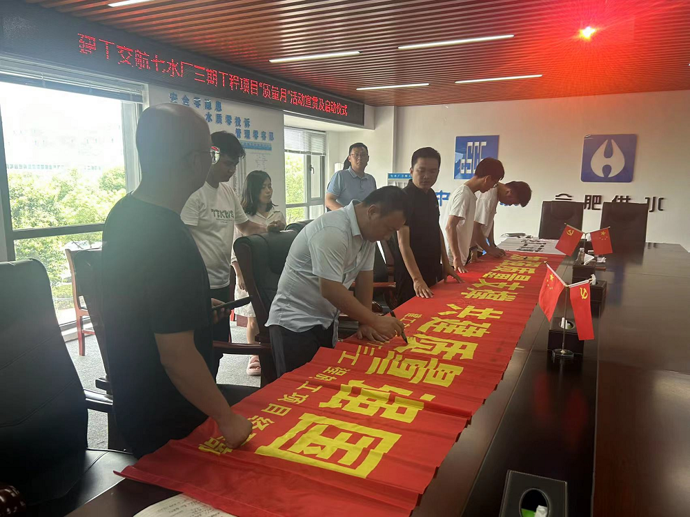 9月3日,七水廠三期工程項(xiàng)目開(kāi)展2024年“質(zhì)量月”活動(dòng)啟動(dòng)儀式,宣貫公司文件、質(zhì)量月宣誓及項(xiàng)目質(zhì)量月活動(dòng)方案宣貫、組織觀看質(zhì)量事故案例、制作宣傳條幅并簽名。