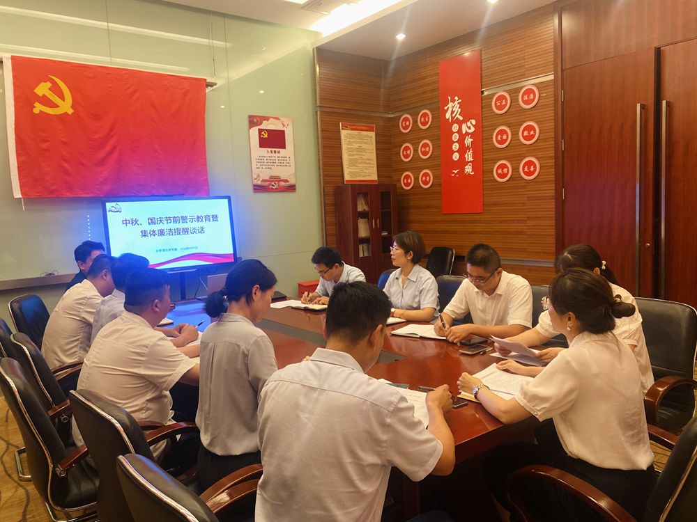 為深入貫徹全面從嚴(yán)治黨要求,強(qiáng)化紀(jì)律規(guī)矩意識(shí),教育引導(dǎo)黨員干部職工筑牢思想防線,嚴(yán)防“節(jié)日腐敗”,營(yíng)造“文明、健康、清廉、和諧”節(jié)日氛圍,9月9日下午,合肥酒店黨支部組織召開(kāi)節(jié)前集體廉潔提醒談話,進(jìn)一步警醒大家要始終繃緊廉潔之弦。