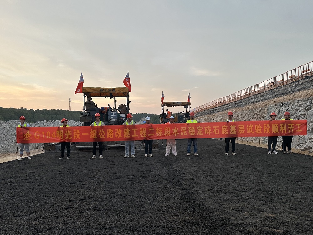 9月10日,G104明光段一級(jí)公路改建工程二標(biāo)段底基層水穩(wěn)試驗(yàn)段順利完成鋪筑,標(biāo)志著進(jìn)入路面施工階段。