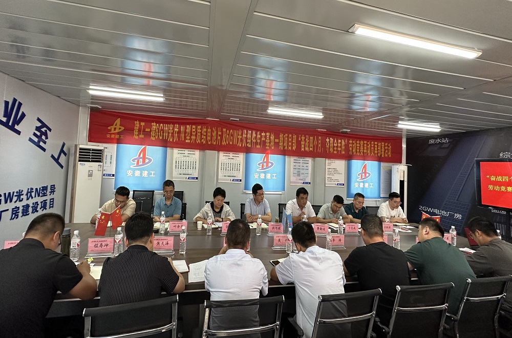 9月10日上午,公司赴年產6GW光伏N型異質結電池片及6GW光伏組件生產基地廠房建設項目召開“奮戰(zhàn)四個月,奪取全年勝”勞動競賽再動員再部署會議。公司黨委副書記、副總經(jīng)理張為政出席會議并講話,副總經(jīng)理費勤波主持會議。