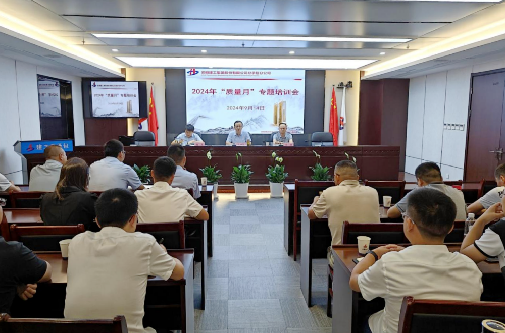 9月14日上午,建工總承包2024年“質(zhì)量月”專題培訓(xùn)會在安建國際大廈10樓會議室召開。建工總承包黨委副書記、副總經(jīng)理武朝暉作開班動員。
