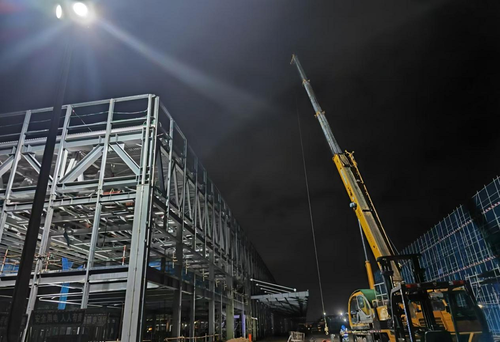 走進夜間施工現(xiàn)場,燈光如晝,機械轟鳴。從朝陽灑向施工廠區(qū)到夜幕降臨,從夜幕降臨又到朝陽再次升起,每一個忙碌的身影,都是對進度的追求、對品質(zhì)的堅守、對安全的保障。