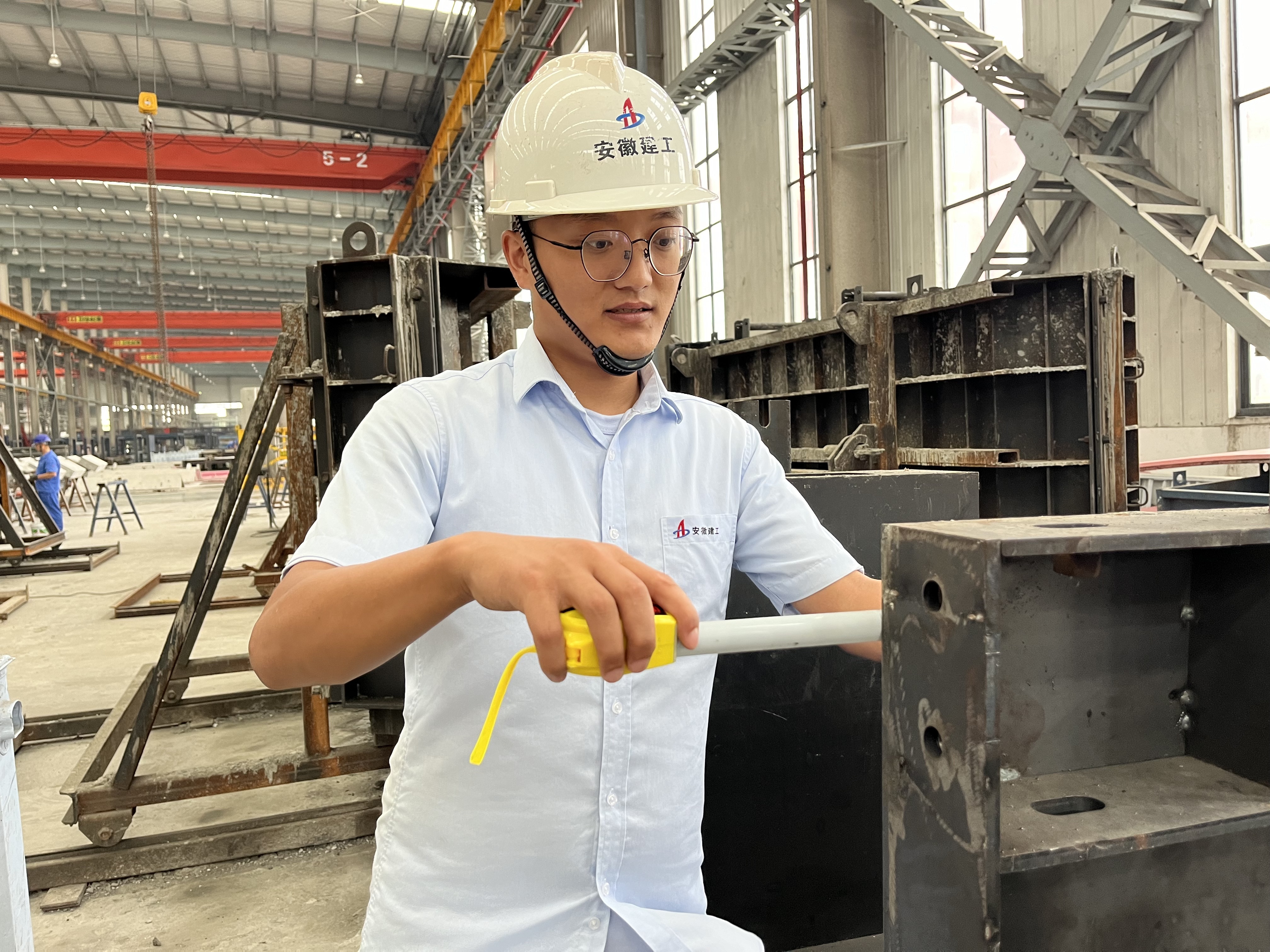 項目成功離不開人,北城公司離不開人才。此次項目的順利完工離不開崗位上的每個人。田轉(zhuǎn)轉(zhuǎn)是一名入黨積極分子,也是此次大眾廠房項目預制柱生產(chǎn)線負責人,他是第一批參與地鐵管片生產(chǎn)線建設(shè)、生產(chǎn)管理重要一員,也是車間異型構(gòu)件生產(chǎn)線主要負責人。面對這類“特殊”的構(gòu)件,他擁有著豐富的生產(chǎn)經(jīng)驗以及應(yīng)對突發(fā)問題的能力。項目生產(chǎn)階段正好是盛夏時期,即使“轉(zhuǎn)一轉(zhuǎn)”,身上都會汗?jié)?,他基本全天守在車間生產(chǎn)線,陪同工人,每一個工序進行檢查、驗收,遇到問題及時調(diào)整、及時記錄、及時反饋、及時總結(jié)。正因為有了他的全程“陪伴”,工人們心“穩(wěn)”了,手“快”了,工時、材料“省”了。除了他,還有很多像他一樣的人忙碌在車間,在工位。大家共同的努力,確保了構(gòu)件順利生產(chǎn)。