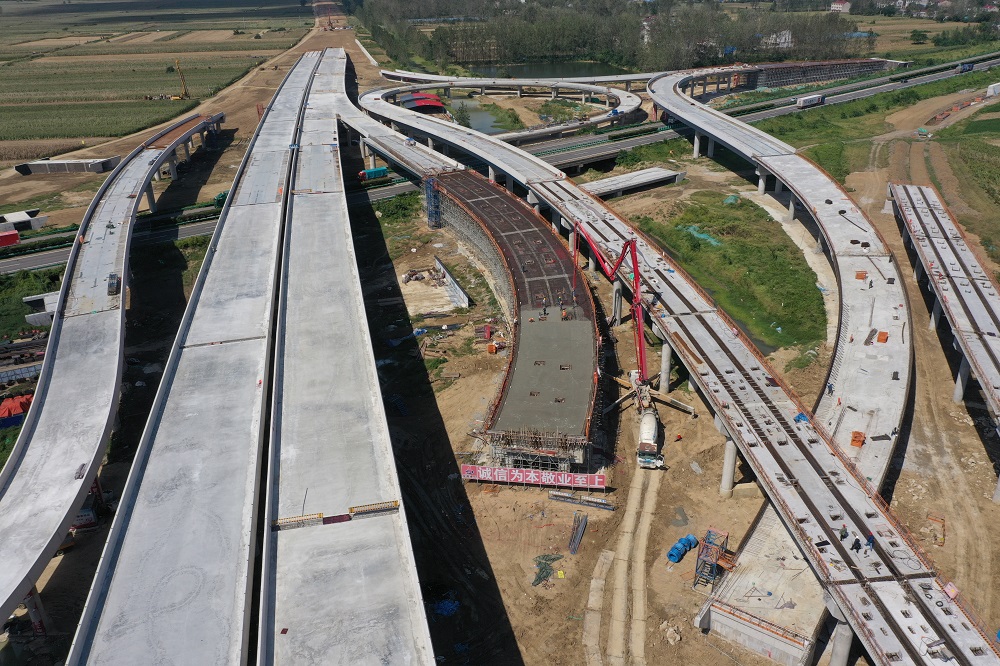 9月22日,經(jīng)過(guò)8個(gè)小時(shí)的連續(xù)奮戰(zhàn),建工建投集團(tuán)五蒙高速TJ-05標(biāo)包集樞紐D匝道橋最后一聯(lián)現(xiàn)澆箱梁順利完成澆筑,標(biāo)志著本標(biāo)段關(guān)鍵性控制工程建設(shè)全部圓滿完成,為月底實(shí)現(xiàn)包集樞紐橋梁工程全部完工的目標(biāo)邁進(jìn)了重要一步。