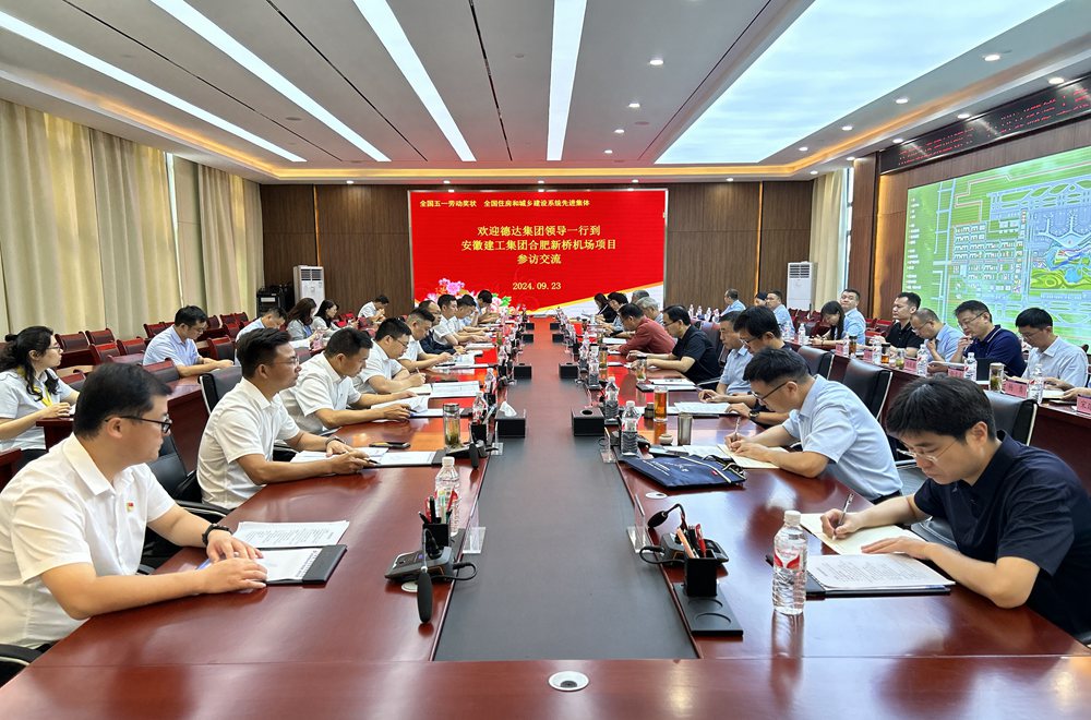 9月23日,德州德達投資控股集團黨委書記、董事長呂光坤,合肥工業(yè)大學(xué)高等培訓(xùn)教育中心副主任湯匯道一行到安徽建工合肥新橋國際機場T2航站樓施工總承包工程和綜合交通中心(含軌道引入)及配套工程項目參訪交流。建工總承包黨委書記、總經(jīng)理傅宏林,建工路橋黨委委員、副總經(jīng)理程濤熱情接待并座談交流。