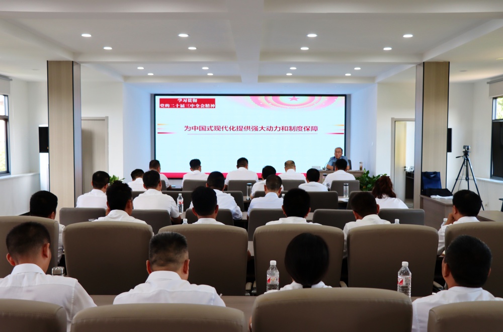 為深入學習貫徹黨的二十屆三中全會精神,推進黨的二十屆三中全會精神真正入腦入心,9月24日下午,安徽水利水利分公司邀請安慶師范大學金文斌教授講授以“為中國式現(xiàn)代化提供強大動力和制度保障”為主題的專題黨課。水利分公司全體黨員、項目經(jīng)理及機關各部門負責人30余人參加。