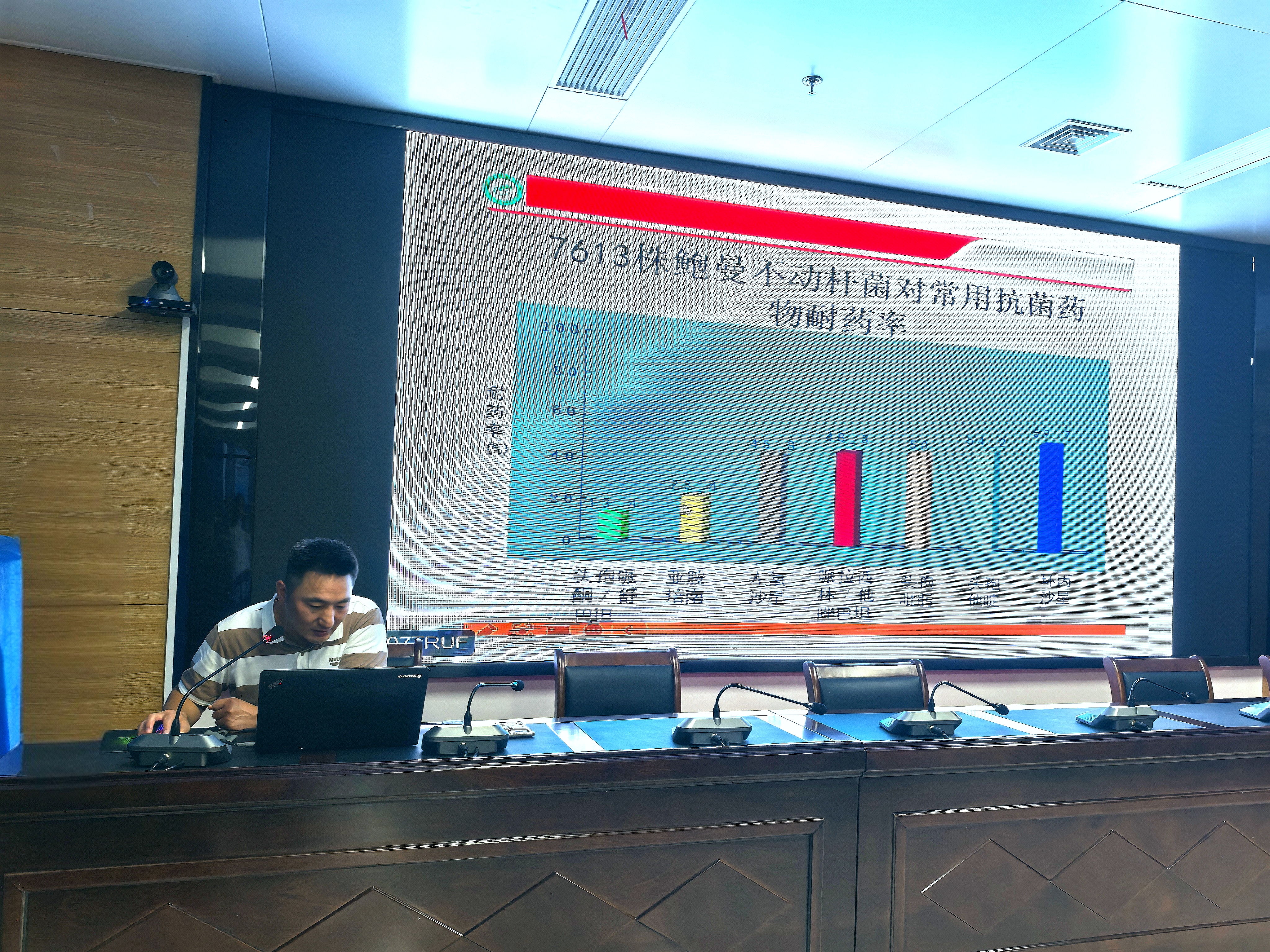 授課老師楊軍副主任醫(yī)師從多重耐藥菌的定義、多重耐藥菌的易感人群、預(yù)防和控制多重耐藥菌我們該如何做、如何監(jiān)測控制多重耐藥菌幾個方面進(jìn)行講解。?培訓(xùn)過程中,楊主任結(jié)合醫(yī)院實際情況,?詳細(xì)講解了多重耐藥菌感染的預(yù)防與控制措施。?重點強調(diào)了手衛(wèi)生、?環(huán)境清潔消毒、無菌技術(shù)操作以及合理使用抗菌藥物的重要性。