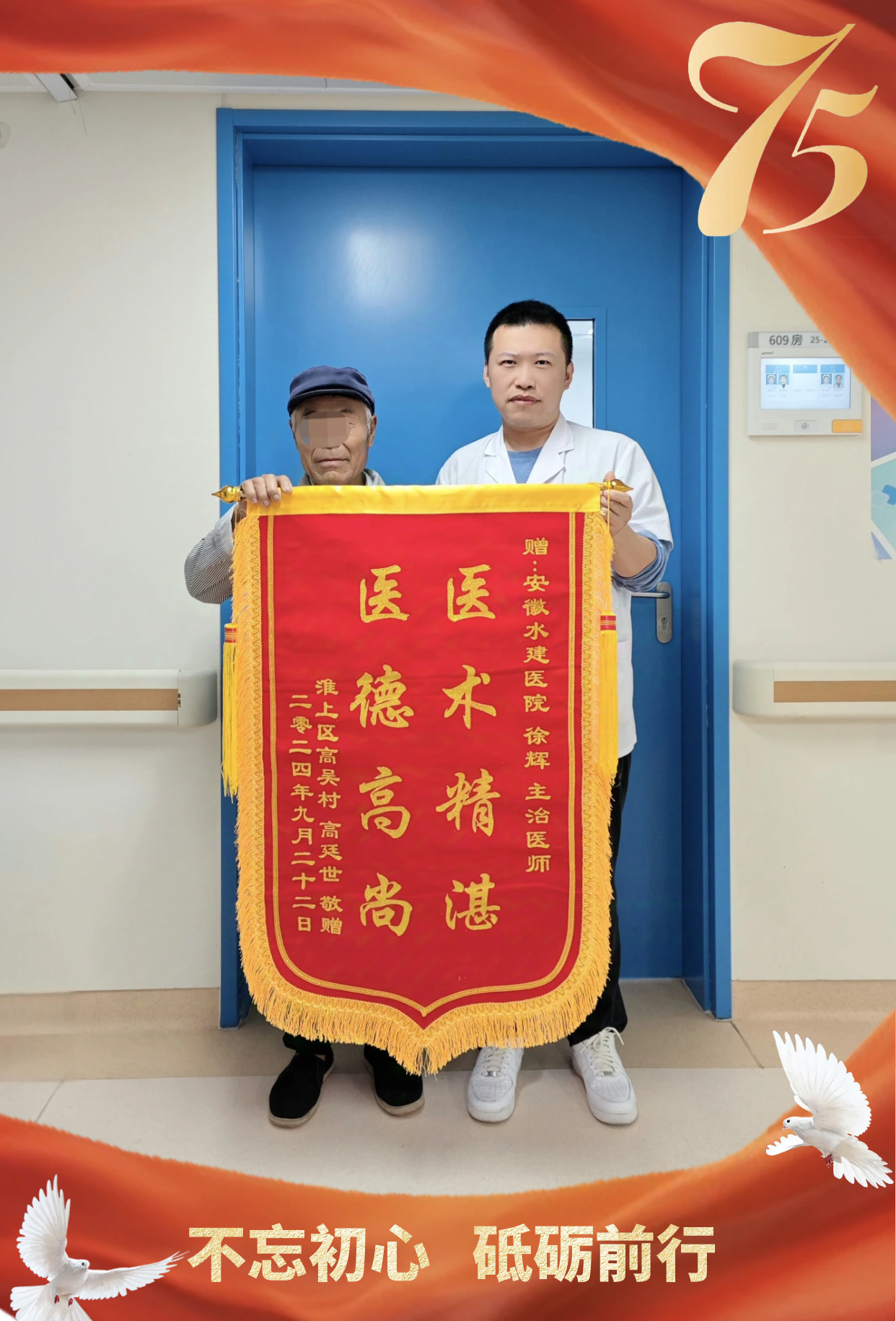 高大爺因腦梗塞和糖尿病問(wèn)題來(lái)到我院就診。徐輝主治醫(yī)師根據(jù)病情,為他制定個(gè)性化治療方案。在內(nèi)科全體醫(yī)護(hù)人員的悉心照料與精心治療下,逐步改善病情,使他的身體狀況顯著好轉(zhuǎn)。高大爺特地送來(lái)一面錦旗表達(dá)對(duì)徐醫(yī)生和內(nèi)科全體醫(yī)護(hù)人員的感謝。