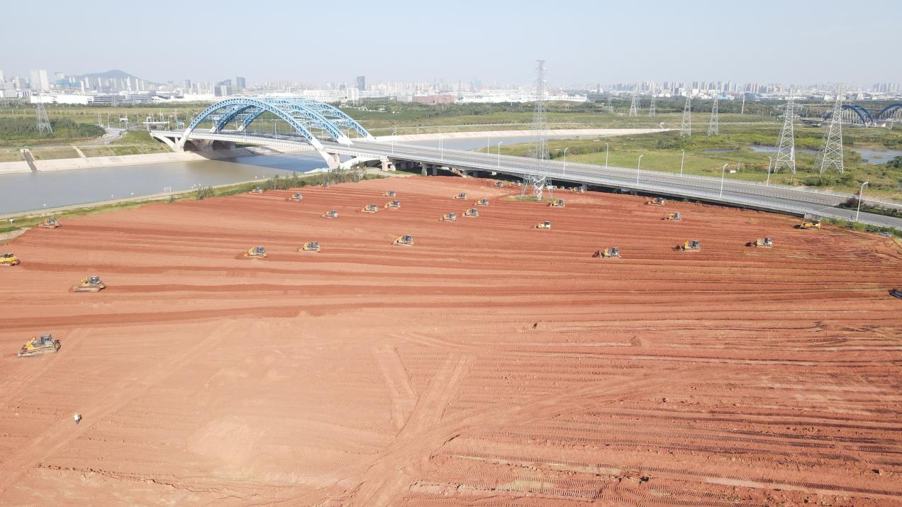 項目位于合肥市高新區(qū)引江濟淮蜀山樞紐南側(cè),復(fù)墾面積達5669畝,工期緊,任務(wù)重。為了交上一張高質(zhì)量的“速寫”答卷,項目部聚焦“硬骨頭”,錨定關(guān)鍵節(jié)點,安排專業(yè)人員根據(jù)現(xiàn)場各區(qū)域表土、有效土及紅砂巖實際存儲情況結(jié)合原復(fù)墾方案實時調(diào)整復(fù)墾高程,確保各區(qū)域內(nèi)部土方最終平衡,并與設(shè)計院密切配合,及時完善設(shè)計內(nèi)容,推進施工圖出圖進度,確保施工圖紙在大批量土方等關(guān)鍵節(jié)點完成前提供,避免返工風(fēng)險。過程中,項目嚴格按照濕法作業(yè)進行施工,配備高桿霧炮機及移動霧炮機及時降塵,各工區(qū)均配備灑水車對現(xiàn)場不間斷灑水降塵,確?,F(xiàn)場滿足環(huán)保要求。
