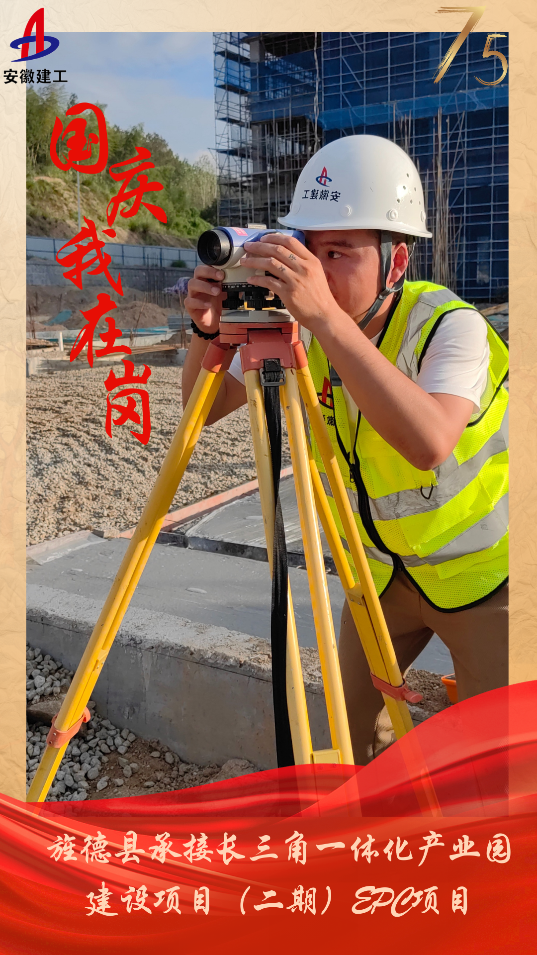 旌德縣承接長三角一體化產(chǎn)業(yè)園建設(shè)項(xiàng)目(二期)EPC項(xiàng)目施工員陳正正在進(jìn)行地坪碎石墊層抄平工作。