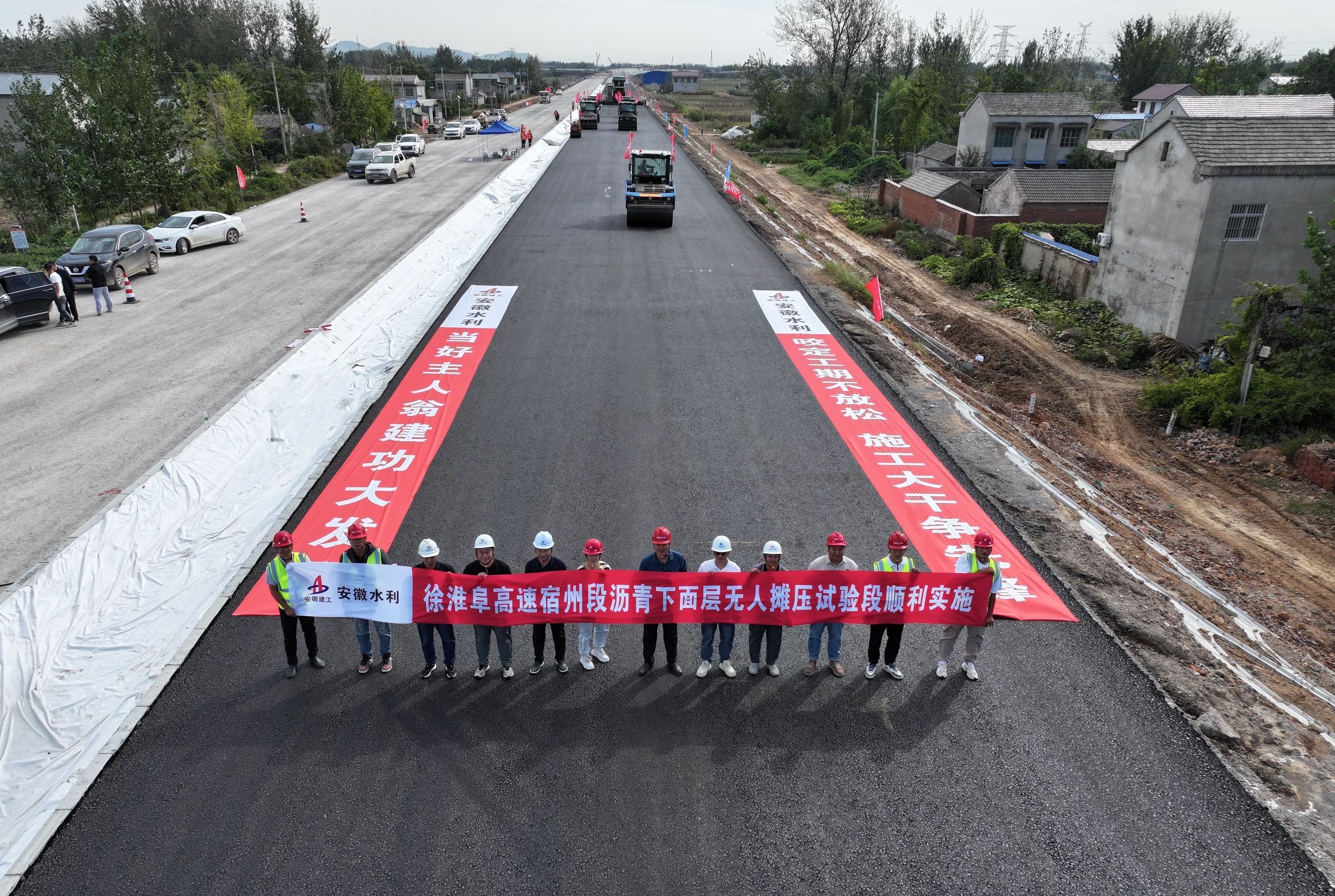 ▲10月1日,舉國(guó)同慶之際,安徽水利徐淮阜高速公路宿州段路面02標(biāo)項(xiàng)目首次應(yīng)用無(wú)人攤壓技術(shù),順利完成瀝青試驗(yàn)段攤鋪?zhàn)鳂I(yè),以實(shí)際行動(dòng)向新中國(guó)75周年華誕獻(xiàn)禮。