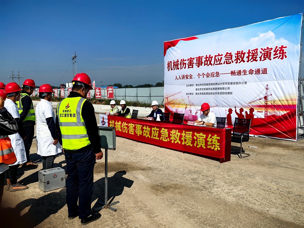 為進(jìn)一步提高項(xiàng)目建設(shè)過(guò)程中的應(yīng)急處置能力,確保施工安全,淮北市高鐵西站綜合開發(fā)項(xiàng)目在國(guó)慶節(jié)期間開展了一場(chǎng)緊張而嚴(yán)肅的應(yīng)急演練。項(xiàng)目各參建單位高度重視,積極組織人員參與。