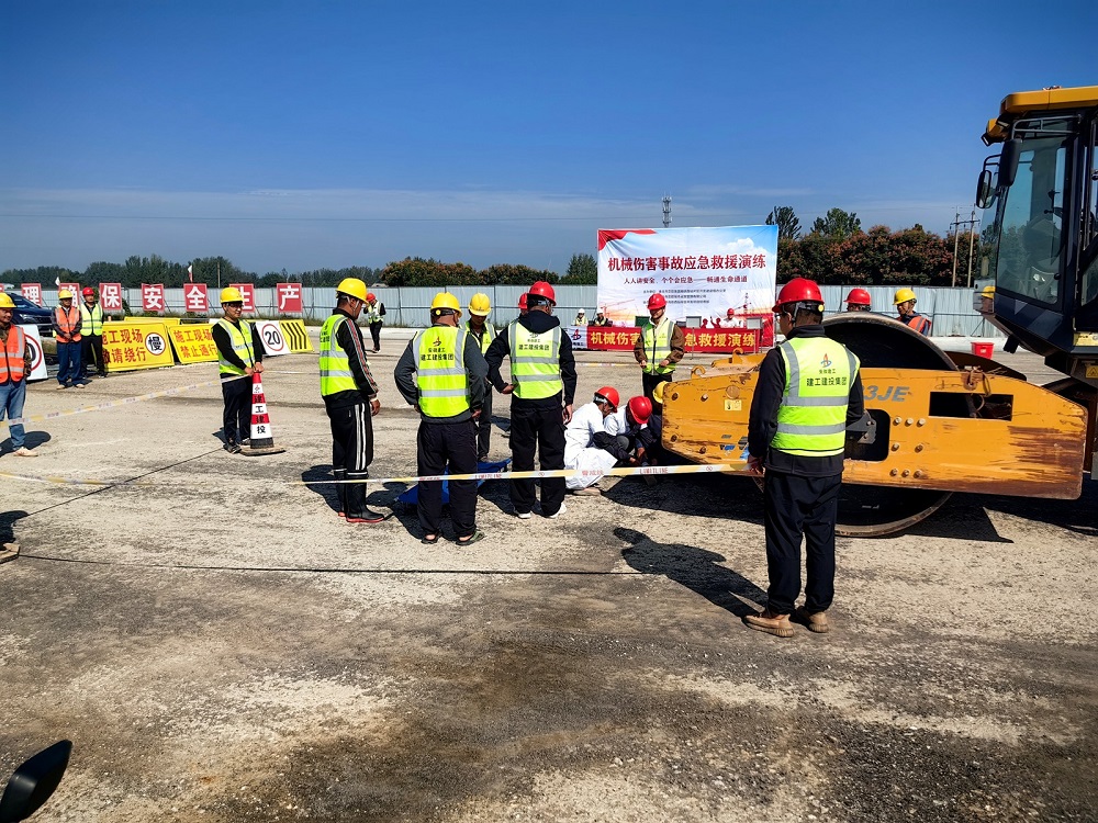 演練現(xiàn)場(chǎng),相關(guān)專業(yè)人員向全體參演人員詳細(xì)講解了遇到事故的應(yīng)急處理方法和注意事項(xiàng),確保大家在演練過(guò)程中能夠準(zhǔn)確、迅速地做出反應(yīng)。隨著演練總指揮的一聲令下,模擬場(chǎng)景迅速展開:一臺(tái)壓路機(jī)在作業(yè)時(shí),由于操作不慎,碰到了前方正在施工的作業(yè)人員。事故發(fā)生后,現(xiàn)場(chǎng)立即陷入緊張狀態(tài),現(xiàn)場(chǎng)安全管理人員第一時(shí)間發(fā)現(xiàn)情況,迅速啟動(dòng)應(yīng)急預(yù)案,設(shè)置警示標(biāo)志,確保救援通道的暢通和現(xiàn)場(chǎng)安全保障工作;后勤保障組迅速行動(dòng),一方面將事故情況及時(shí)上報(bào)給項(xiàng)目領(lǐng)導(dǎo)和相關(guān)部門,另一方面緊急聯(lián)系醫(yī)療急救單位;醫(yī)療救護(hù)組攜帶急救設(shè)備和藥品,以最快的速度趕到現(xiàn)場(chǎng)對(duì)受傷人員進(jìn)行了初步的檢查和緊急救治,穩(wěn)定傷者的生命體征,為后續(xù)的醫(yī)療轉(zhuǎn)運(yùn)爭(zhēng)取寶貴時(shí)間。