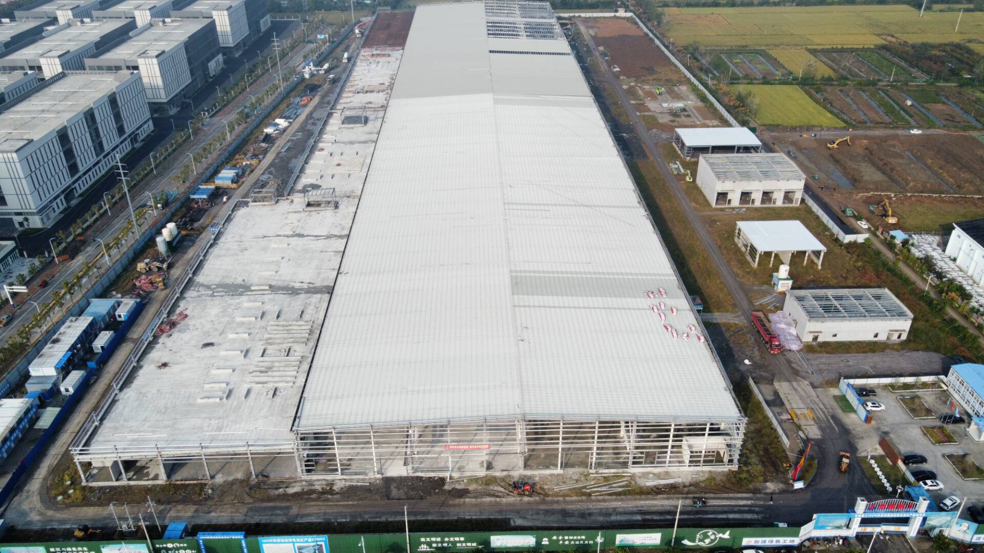 今年夏季高溫持續(xù)時(shí)間長(zhǎng),淮南地區(qū)雨水頻發(fā),為搶抓工程建設(shè)進(jìn)度,項(xiàng)目部定期組織召開(kāi)調(diào)度會(huì),以問(wèn)題為導(dǎo)向,分層突破,要求參建單位勇挑重?fù)?dān)、迎難而上,堅(jiān)持小雨不停干、大雨室內(nèi)干、沒(méi)雨加班干、天熱早晚干,同時(shí)項(xiàng)目管理人員也全程跟班指導(dǎo)作業(yè),避免因工序倒置而返工。截至目前,1#電池車(chē)間鋼結(jié)構(gòu)施工完成90%、地坪施工完成45%,B、C、D區(qū)石子完成70%,實(shí)現(xiàn)產(chǎn)值達(dá)3000萬(wàn)元。