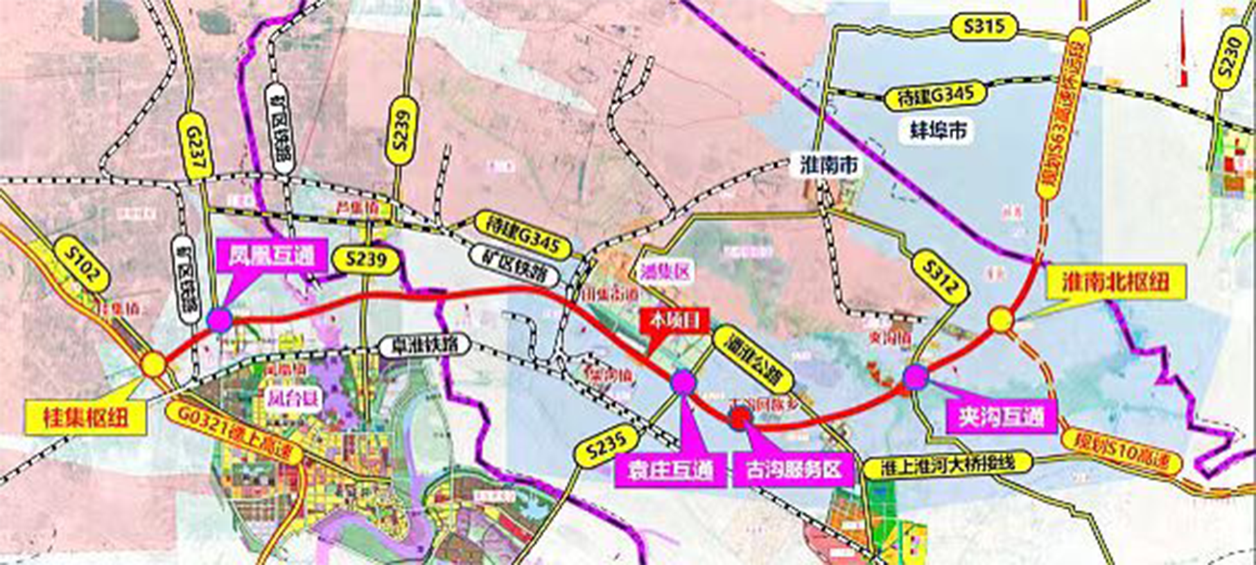 懷遠(yuǎn)至鳳臺(tái)高速公路淮南段起自潘集區(qū)夾溝鎮(zhèn)東王村淮南市與蚌埠市交界處,接規(guī)劃懷遠(yuǎn)至鳳臺(tái)高速公路蚌埠段,止于桂集鎮(zhèn)勇敢村,接G0321德上高速公路,全長(zhǎng)約37.1公里,全線采用雙向四車道高速公路標(biāo)準(zhǔn),設(shè)計(jì)速度120公里/小時(shí),對(duì)于加強(qiáng)淮南、蚌埠等地區(qū)交通聯(lián)系,促進(jìn)區(qū)域經(jīng)濟(jì)發(fā)展具有重要意義。