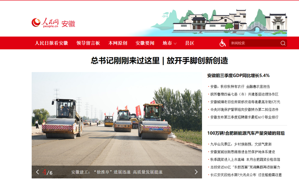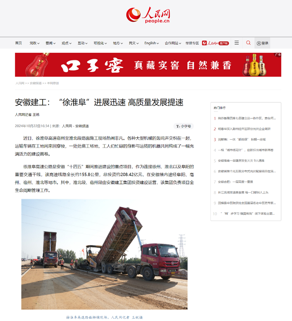 近日,人民網安徽頻道重點報道了安徽建工投資建設的徐淮阜高速項目。