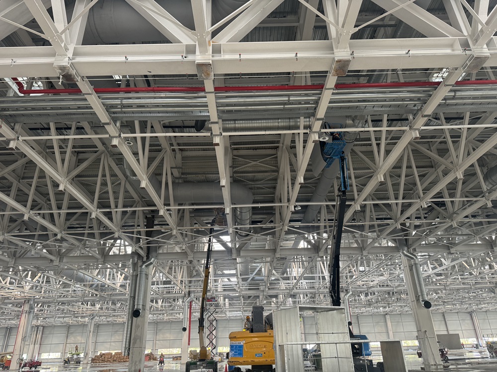 目前,“完成首開區(qū)”節(jié)點(diǎn)目標(biāo)已完成。本周現(xiàn)場施工人數(shù)約450人,升降車、登高車等機(jī)械約180臺。電氣班組完成橋架安裝12000米,燈具安裝3000盞,電線安裝70000米,電氣配管安裝15000米;給排水班組完成管道安裝21000米;暖通班組完成風(fēng)管制作與安裝45000平方米;消防班組完成消防管道安裝8500米。