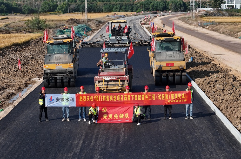 10月23日,安徽水利Y011蚌淮高速項(xiàng)目瀝青下面層首件工程(試驗(yàn)段)鋪筑完成,正式拉開路面瀝青施工序幕,按下通車“加速鍵”。