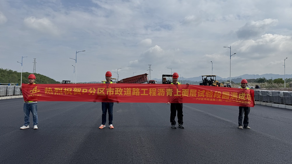 10月28日上午,伴隨著攤鋪機(jī)的轟鳴,建工建投集團(tuán)重慶P分區(qū)市政道路二期(一標(biāo)段)工程正式開始瀝青上面層試驗(yàn)段攤鋪。