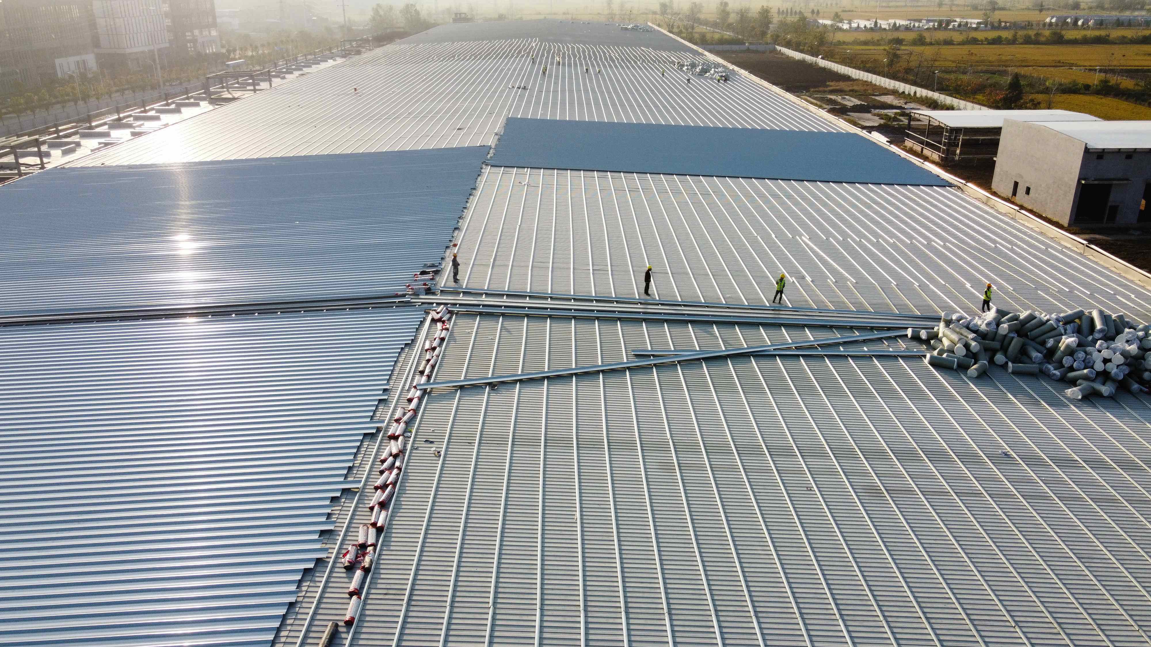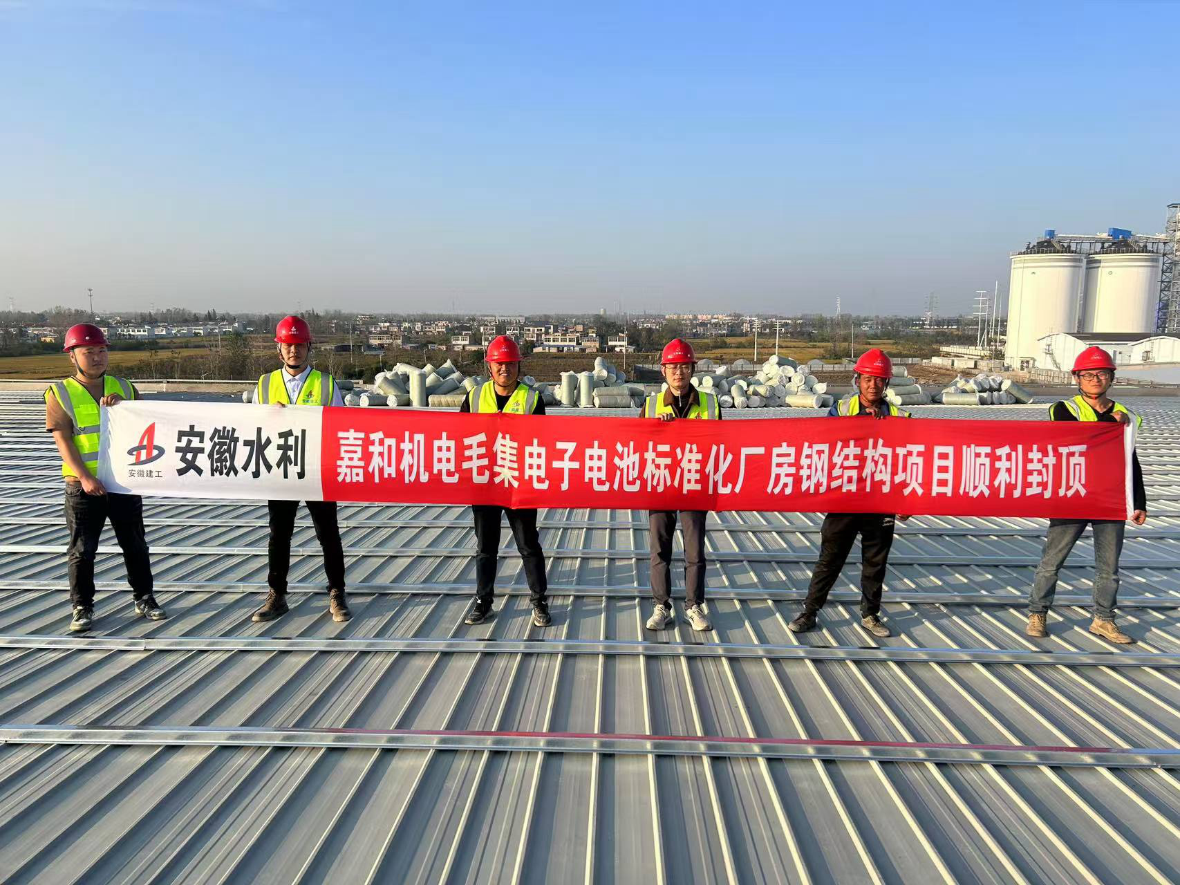 近日,隨著最后一塊屋面板的精準(zhǔn)就位,安徽水利毛集電子電池標(biāo)準(zhǔn)化廠房鋼結(jié)構(gòu)項(xiàng)目順利封頂,項(xiàng)目建設(shè)取得階段性成果。