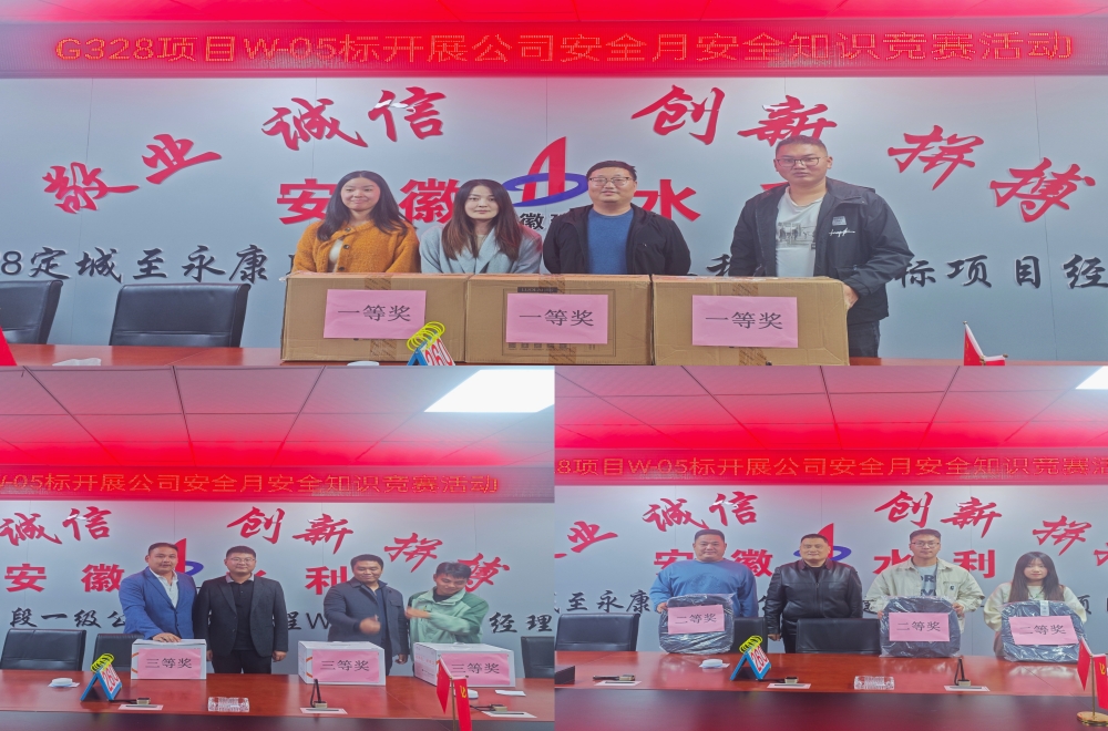 下一步,安徽水利G328標項目將以此次安全知識競賽為契機,持續(xù)發(fā)力、加壓奮進,持續(xù)加強安全生產(chǎn)管理,打好安全生產(chǎn)治本攻堅戰(zhàn),推動重大事故隱患判定標準落地實施,進一步夯實企業(yè)安全生產(chǎn)主體責(zé)任,不斷提升安全管理水平,為公司高質(zhì)量安全發(fā)展貢獻力量。