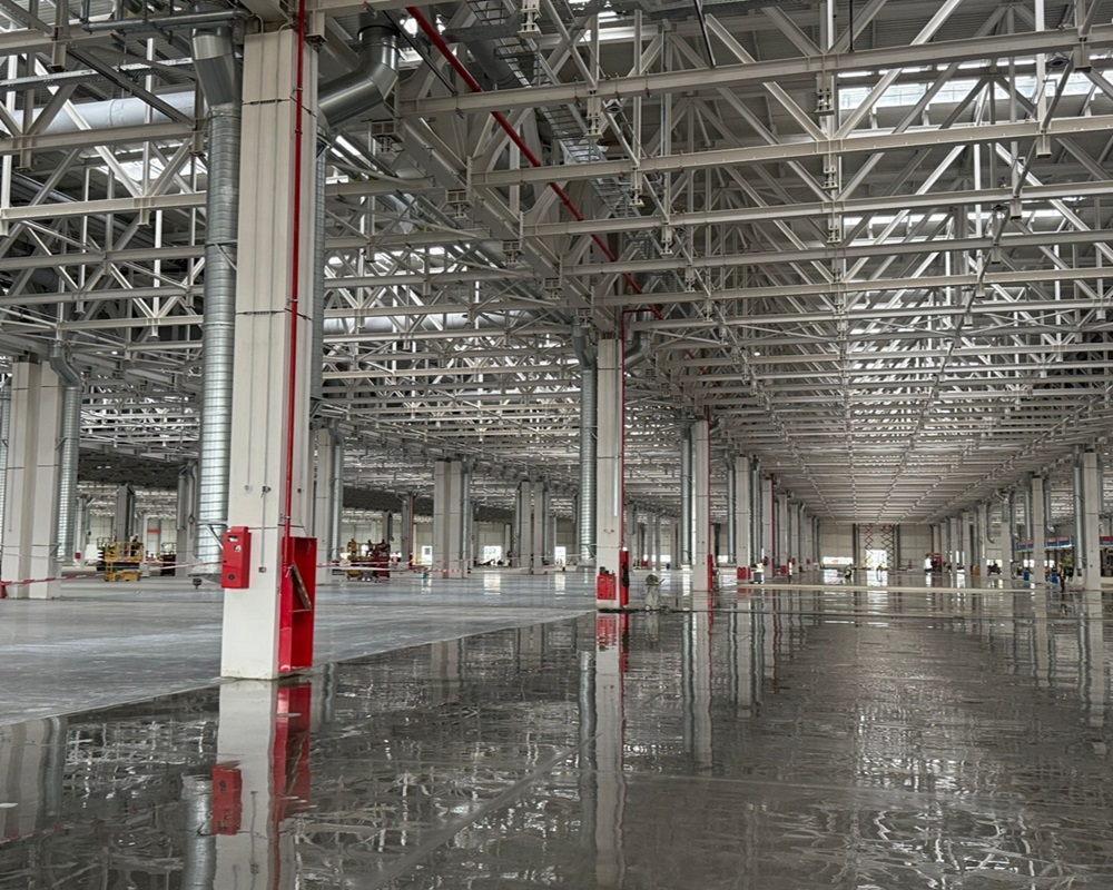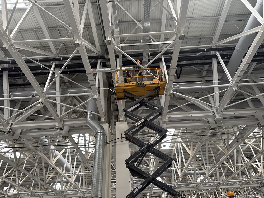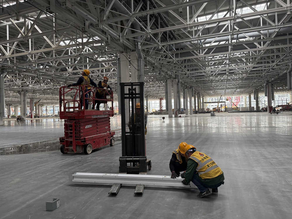 截至目前,焊裝車間燈具、車間一東側630毫米循環(huán)水不銹鋼管已全部安裝完成。本周完成消防箱安裝150套,母線安裝700米,屋頂風機設備吊裝到位,如期完成節(jié)點目標。與此同時,工藝廠家已進場同步施工。