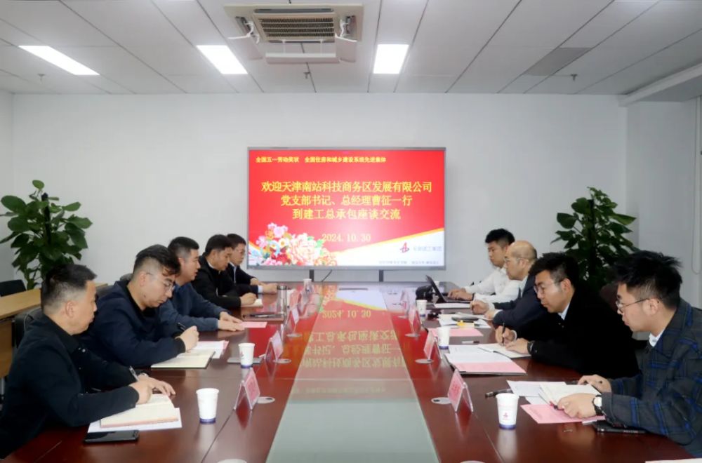 10月30日下午,天津南站科技商務(wù)區(qū)發(fā)展有限公司黨支部書記、總經(jīng)理曹征一行到訪建工總承包,公司黨委書記、總經(jīng)理傅宏林熱情接待,并舉行工作會(huì)談。