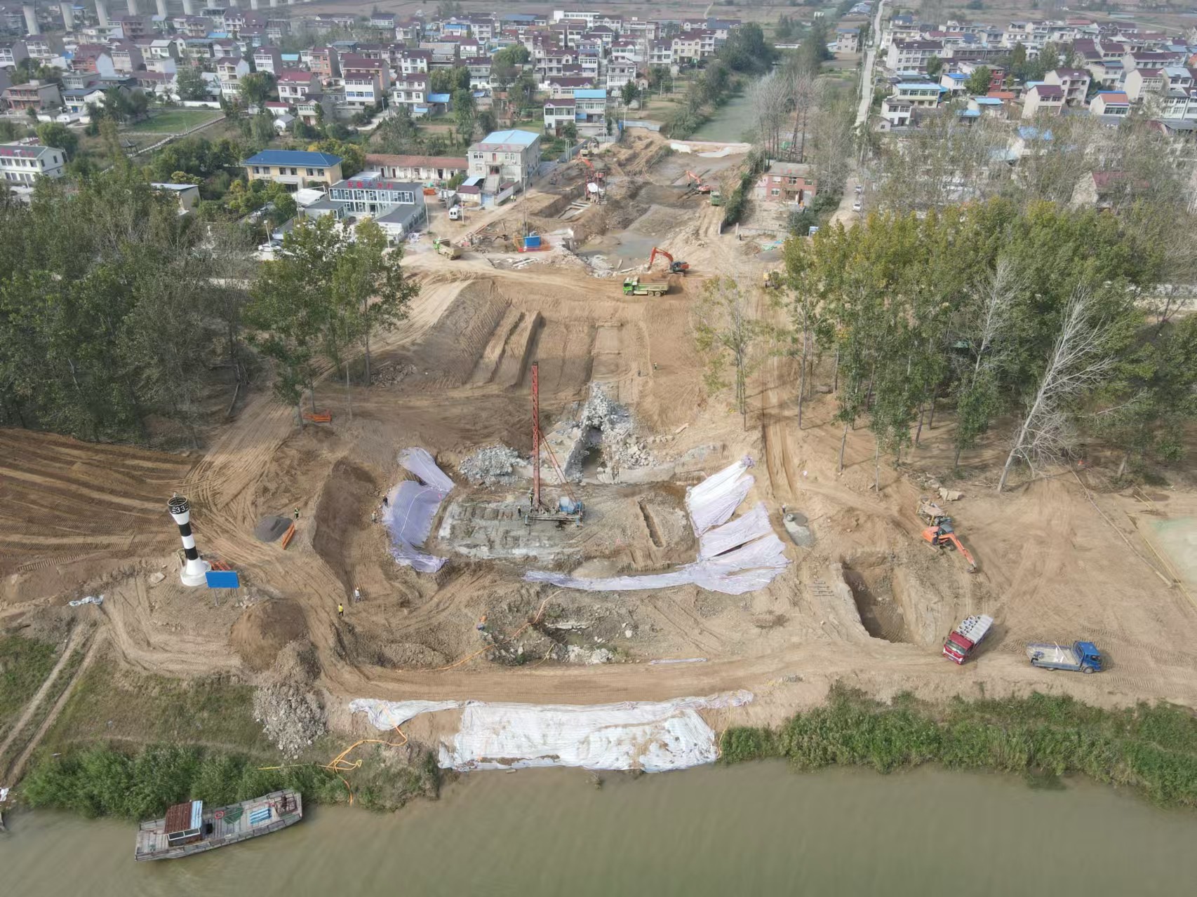 4座泵站均已完成破堤作業(yè),在陳郢站施工現場,工人們正在進行緊張而有序的壓力水箱、泵室及前池PHC管樁施工,其余泵站清表、土方開挖、泵室及前池PHC管樁施工、水泥土攪拌樁地基處理等施工正在同步進行。計劃11月25日前逐步完成陳郢站穿堤箱涵部位水泥土攪拌樁施工,進水閘、進口翼墻、壓力水箱及前池管樁施工,為后續(xù)泵室及壓力水箱第一層土方開挖打下良好基礎。