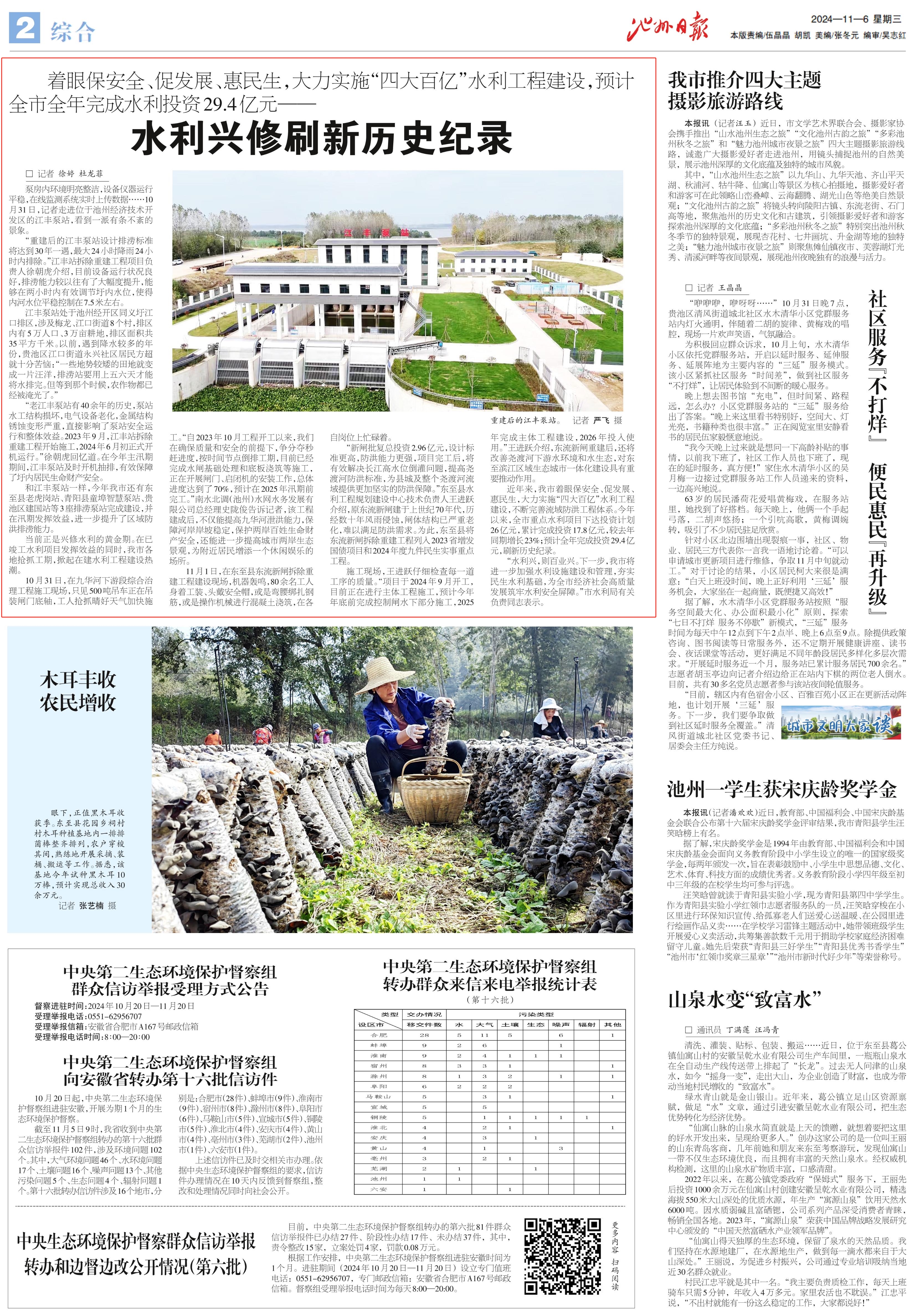 11月6日,安徽水利江豐站項(xiàng)目受到池州日?qǐng)?bào)關(guān)注報(bào)道。