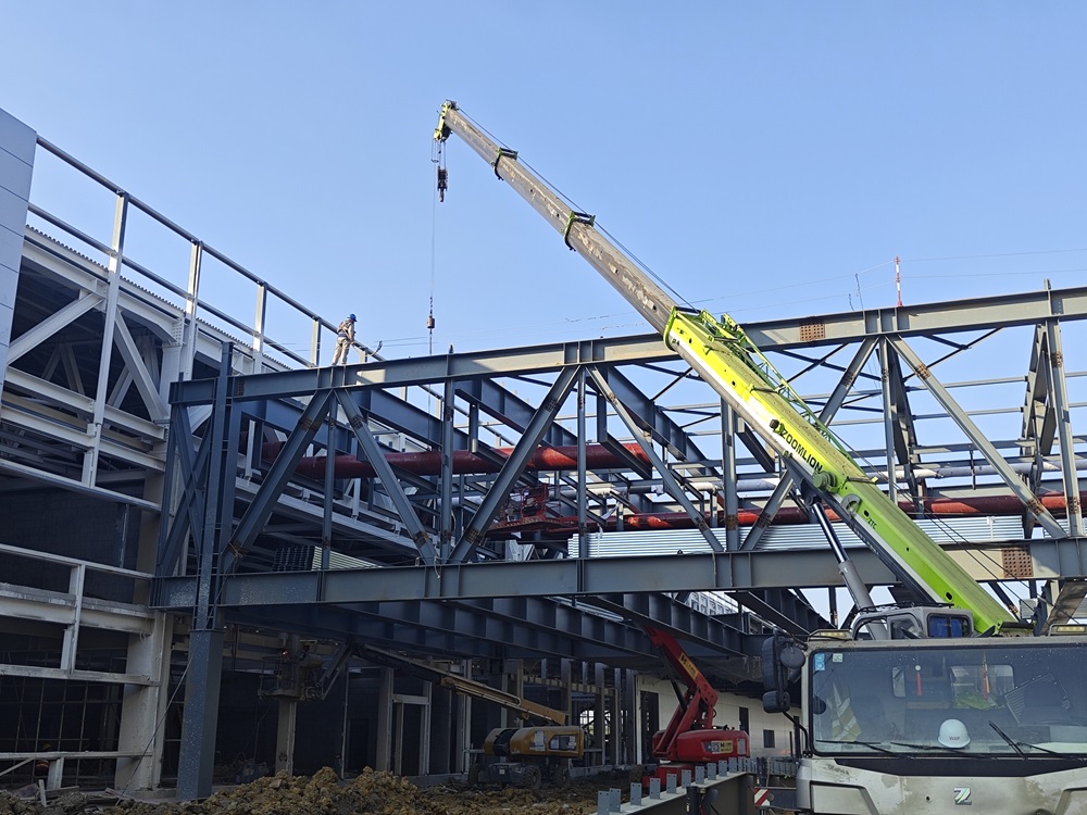 雖已立冬,天氣轉(zhuǎn)涼,但建工安裝合肥新橋智能制造產(chǎn)業(yè)園一階段一標項目部戰(zhàn)鼓依然在響,施工現(xiàn)場依舊是一片奮戰(zhàn)猶酣的火熱場面。吊車揮舞著“長臂”、升降車起起落落、施工車來回穿梭、工人們忙忙碌碌,敲擊聲聲聲入耳……一切都在為確保競賽節(jié)點努力拼搏著。