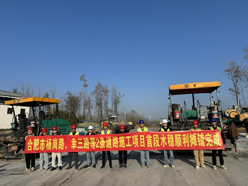 2024年11月12日,合肥市楊崗路、幸三路等2條道路施工項(xiàng)目底基層水穩(wěn)攤鋪順利完成!