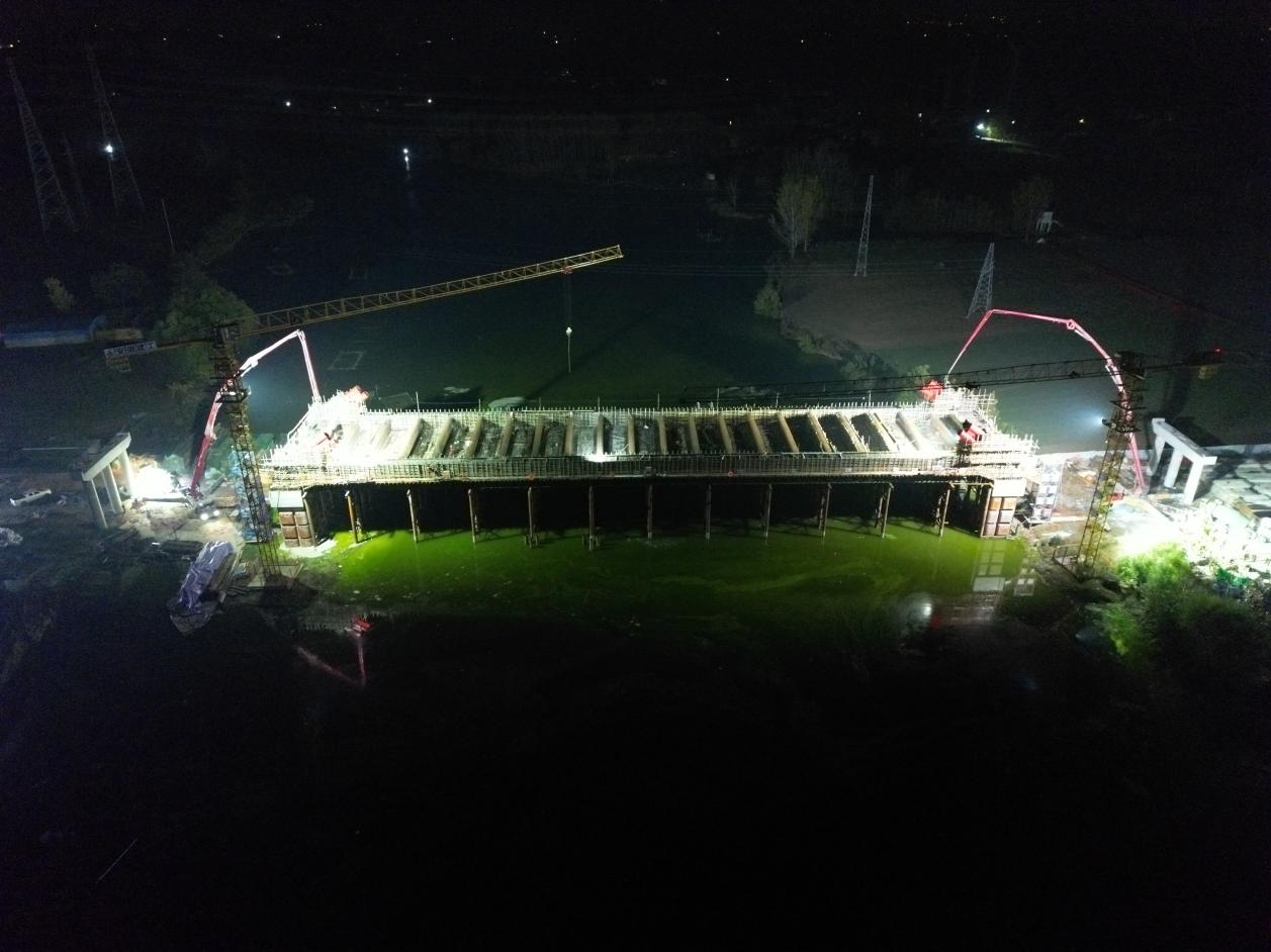 11月12日,隨著最后一方混凝土入模,經(jīng)過(guò)27個(gè)小時(shí)的連續(xù)奮戰(zhàn),沱澮河航道(李口至臨渙段)整治工程施工02標(biāo)段項(xiàng)目主橋上部結(jié)構(gòu)橫系梁及拱腳一次性整體性澆筑順利完成。
