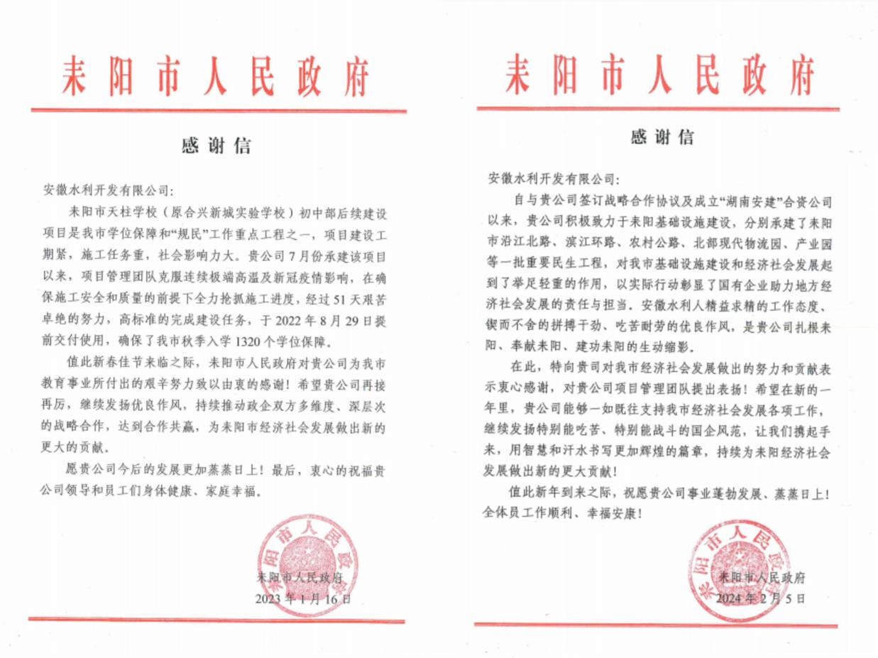 與客戶同心,合作共贏。2024年,安徽水利南方分公司積極融入地方發(fā)展大局,推動耒陽市委市政府與安徽水利高層開展互動交流6次,建立起良好互信關(guān)系。在此期間,公司還分別與耒陽市人民政府、耒陽經(jīng)濟開發(fā)區(qū)管理委員會簽訂了戰(zhàn)略合作框架協(xié)議,與耒陽市城市和農(nóng)村建設(shè)投資集團有限公司合資成立了湖南安建建設(shè)開發(fā)有限公司,建立了政企合作的紐帶。合資公司的成立為助力耒陽基礎(chǔ)設(shè)施建設(shè),助推耒陽經(jīng)濟發(fā)展,帶動當?shù)厝丝诰蜆I(yè),增加地方財政稅收等方面貢獻了“湖南安建”的力量,并順利取得建筑工程施工總承包貳級和市政公用工程施工總承包貳級資質(zhì)資質(zhì)。