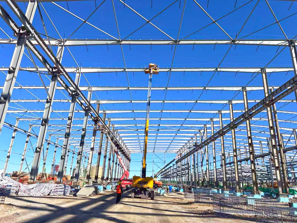 吊車的“長臂”在空中伸展、曲臂車在鋼架間頻繁升降、工程車在場地上來回穿梭、工人們忙碌的身影隨處可見,敲擊聲此起彼伏……針對當(dāng)前重點(diǎn)建設(shè)任務(wù),項(xiàng)目部精細(xì)部署,組織施工力量、細(xì)化節(jié)點(diǎn)安排、調(diào)配人機(jī)資源,鼓足干勁、狠抓安全、緊扣進(jìn)度、全員發(fā)力,克服高海拔的特殊施工環(huán)境和偏遠(yuǎn)地區(qū)的資源保障困難,項(xiàng)目部提出了“奮戰(zhàn)兩月 決勝年末”的戰(zhàn)斗口號,以“拼”的姿態(tài),“搶”的速度,全力沖刺12月底確保完成廠房封閉目標(biāo)節(jié)點(diǎn)。