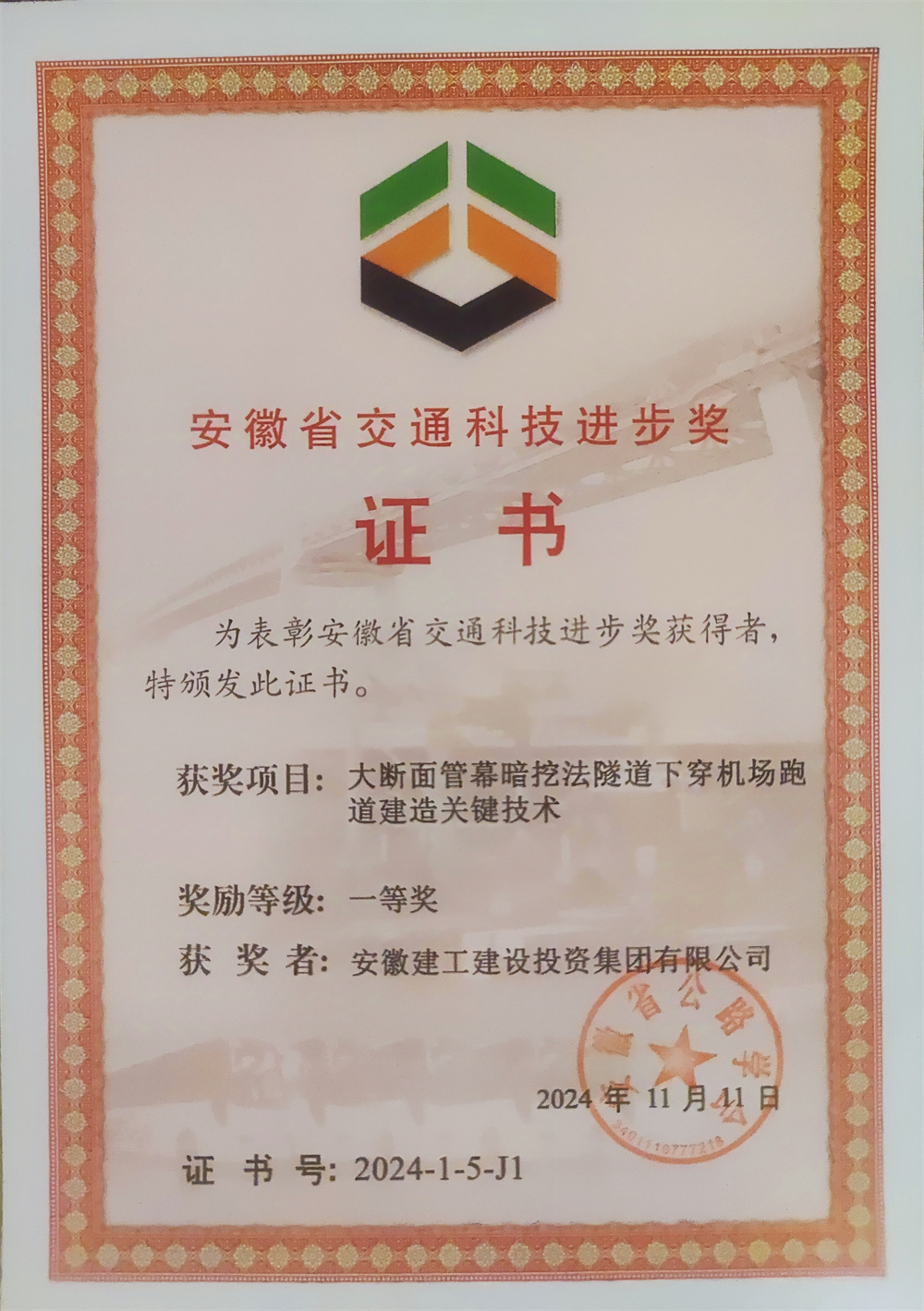 安徽建工建設(shè)投資集團申報的5項研究成果獲獎,其中《大斷面管幕暗挖法隧道下穿機場跑道建造關(guān)鍵技術(shù)》榮獲一等獎;建工建投集團被授予2023-2024年度先進會員單位;安徽省公路學(xué)會橋隧專委會被授予2023-2024年度先進學(xué)會和分支機構(gòu)稱號。公司黨委委員、副總經(jīng)理、總工程師陳莘作為獲獎單位代表上臺領(lǐng)獎。