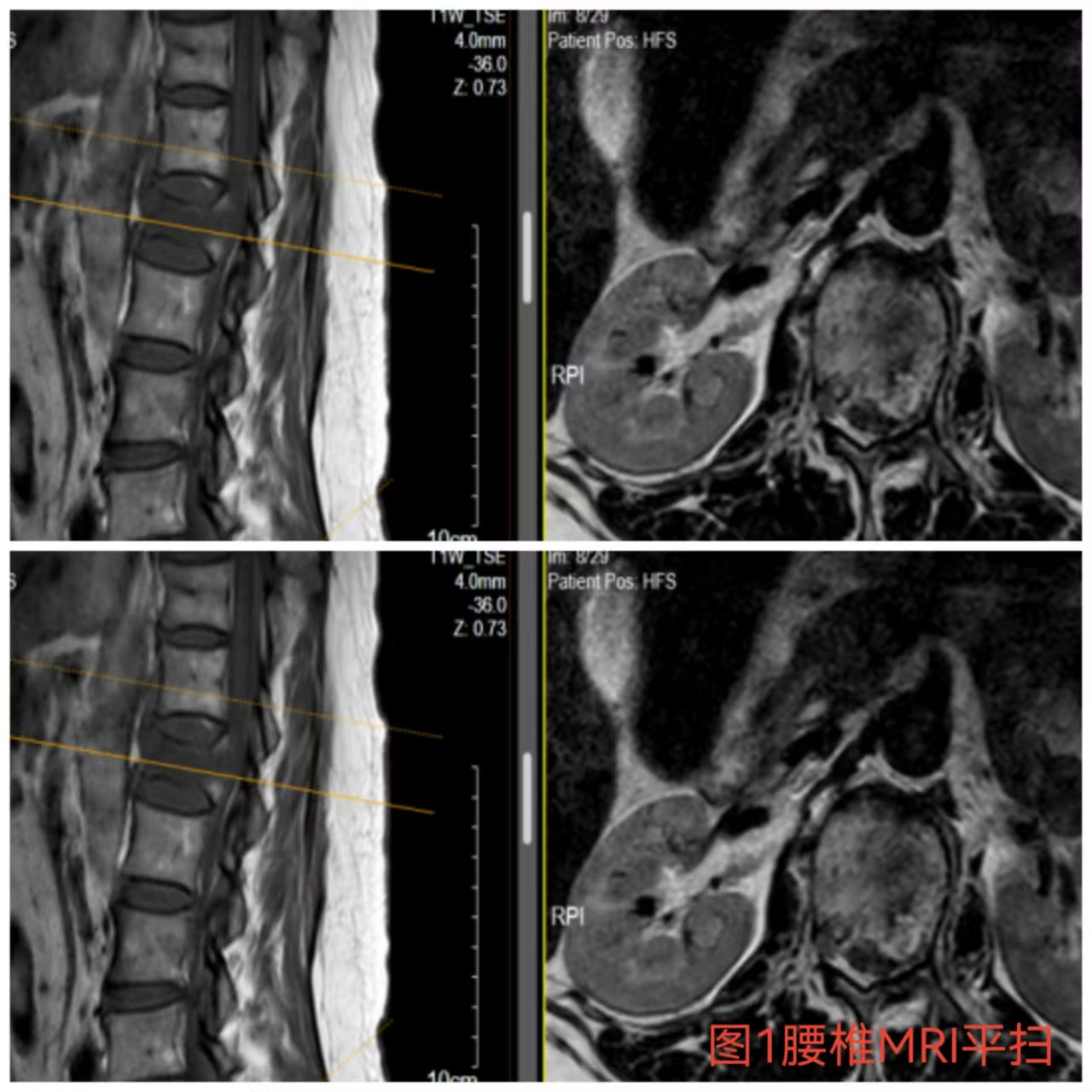 入院時(shí)患者躺在床上不能動(dòng)彈,眼神中透漏著深深的無助,對(duì)于她來說這種傷情無疑是沉重的,尤其是腹股溝以下感覺消失、雙下肢肌力0級(jí),這意味著其下肢無法活動(dòng)及站立,仿佛被命運(yùn)按下了暫停鍵;與病人及家屬充分溝通病情后,第一時(shí)間給予對(duì)癥治療,監(jiān)測(cè)患者生命體征,行腰椎核磁檢查(圖1)提示:腰1椎體爆裂性骨折,椎體后緣塌陷致骨性椎管狹窄,壓迫脊髓神經(jīng),結(jié)合患者病情及輔助檢查可診斷為:“L1椎體爆裂性骨折伴雙下肢截癱”。