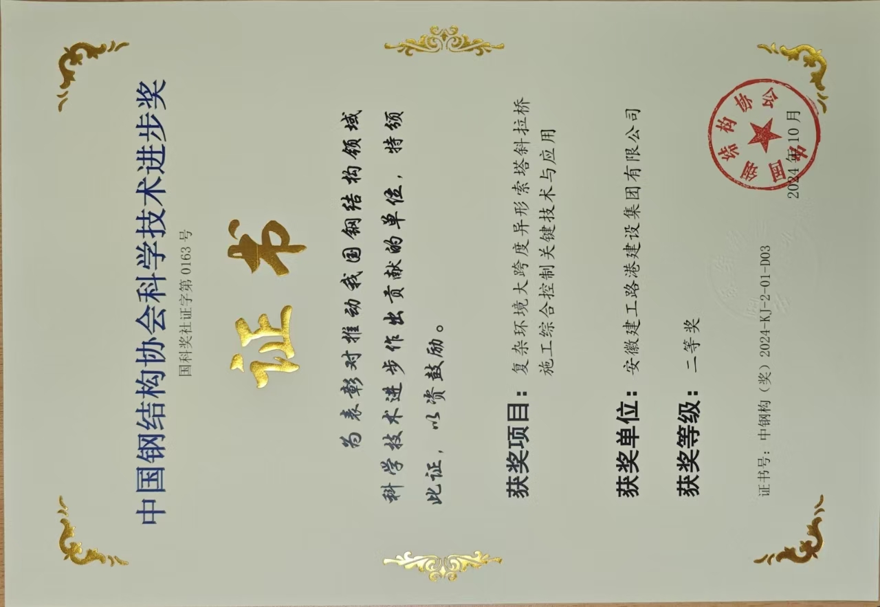 近日,“中國鋼結(jié)構(gòu)協(xié)會(huì)成立40周年大會(huì)暨2024中國鋼結(jié)構(gòu)大會(huì)”在北京召開,建工路港“復(fù)雜環(huán)境大跨度異形索塔斜拉橋施工綜合控制關(guān)鍵技術(shù)與應(yīng)用”項(xiàng)目榮獲中國鋼結(jié)構(gòu)協(xié)會(huì)科學(xué)技術(shù)獎(jiǎng)二等獎(jiǎng)。