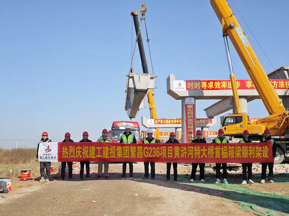 12月1日上午,由建工建投集團(tuán)承建的繁昌區(qū)G236項(xiàng)目二標(biāo)段控制性工程黃滸河特大橋首榀30m箱梁順利架設(shè)完成。