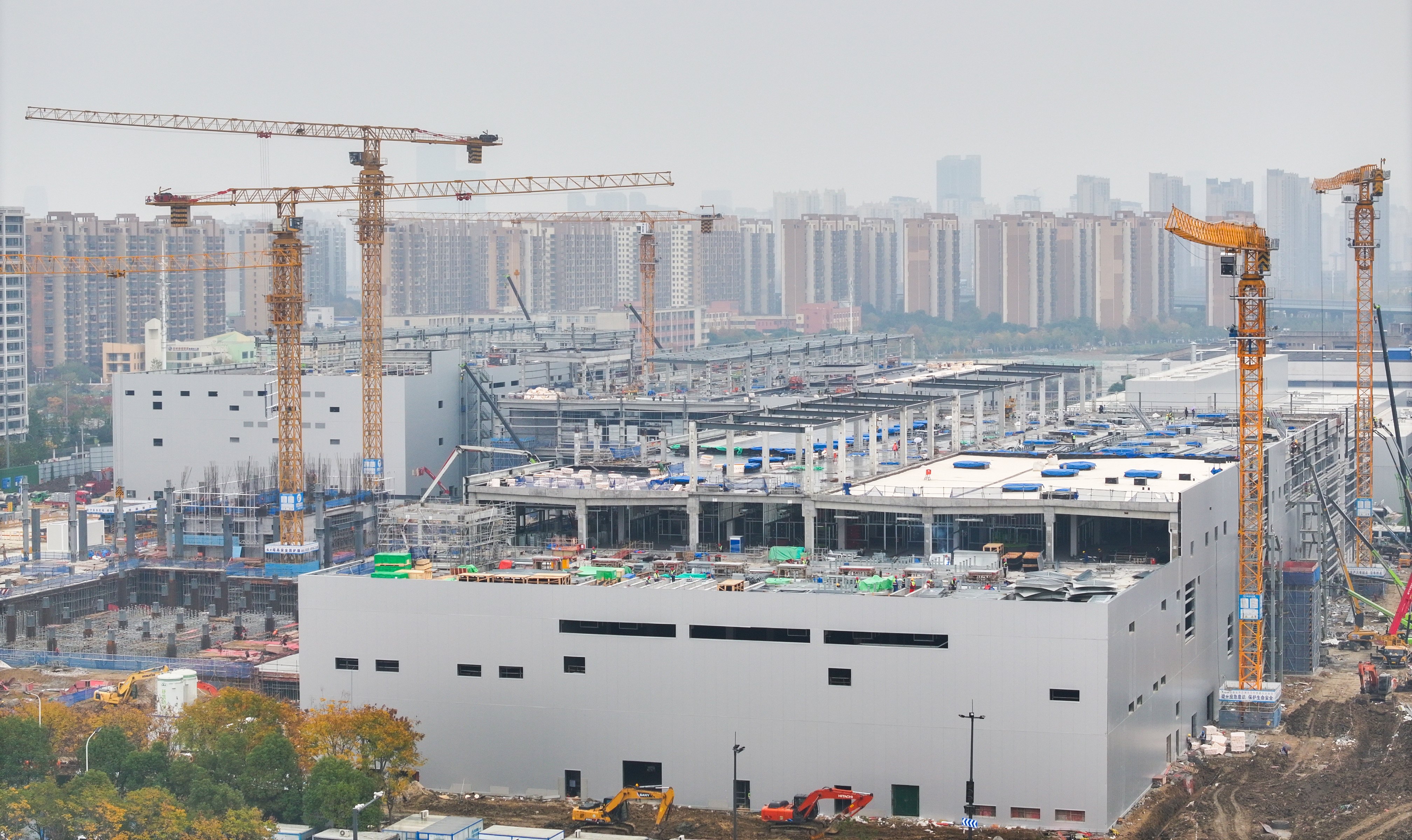 職工停車樓、庫房一、站房二施工進(jìn)行中。