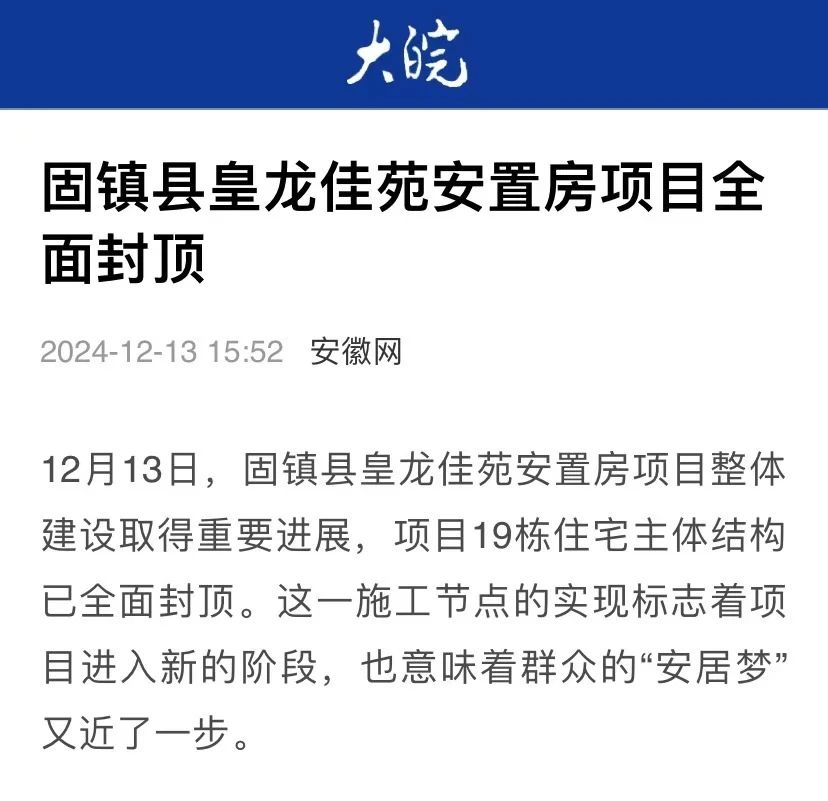 12月13日,安徽水利固鎮(zhèn)縣皇龍佳苑安置房項目全面封頂,受到大皖新聞等媒體關(guān)注報道。