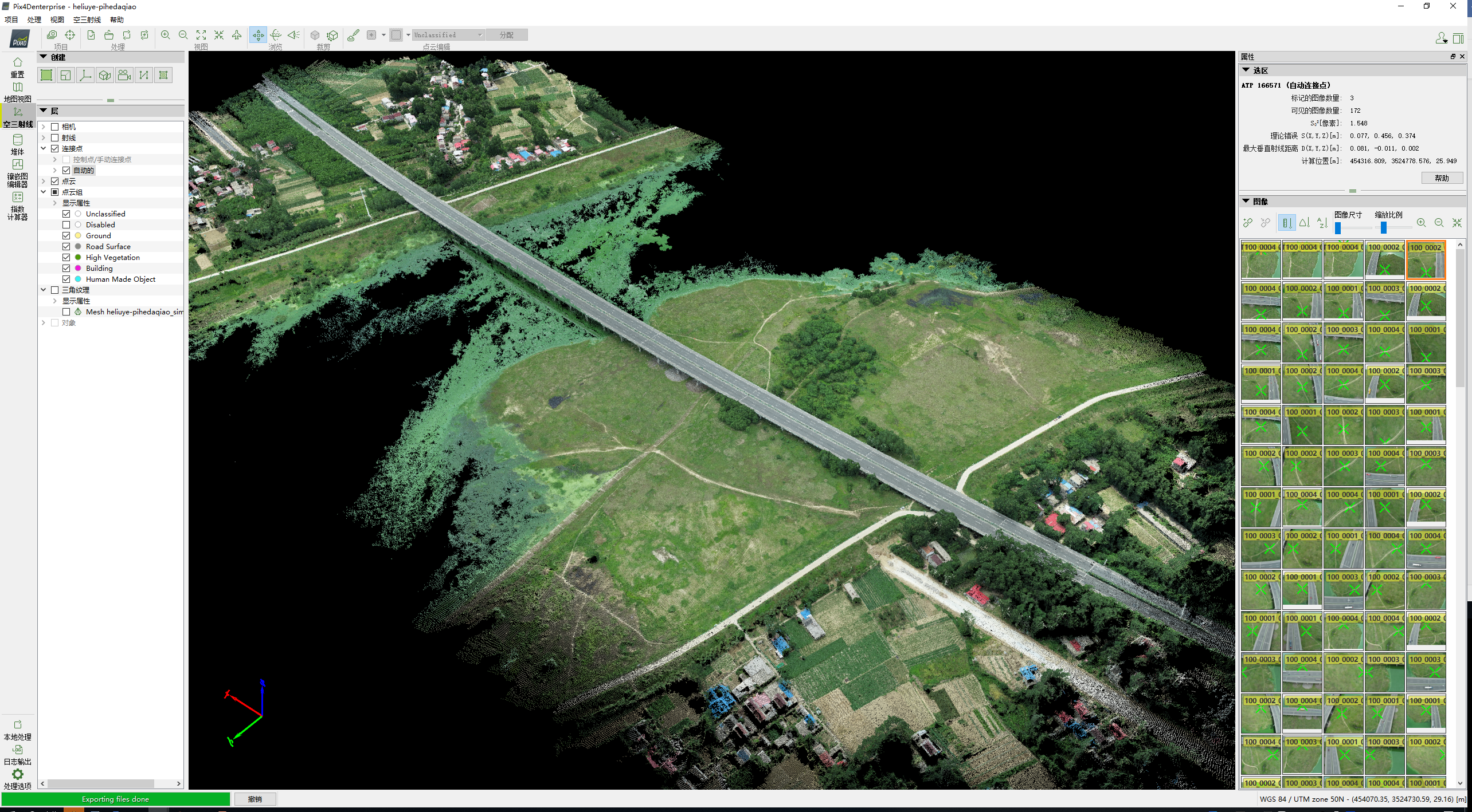 為了破解這一難題,項(xiàng)目部引入了實(shí)景三維合成技術(shù),充分利用無人機(jī)激光雷達(dá)掃描航拍、并結(jié)合衛(wèi)星遙感等先進(jìn)數(shù)據(jù)源,成功從多個(gè)維度捕捉了地面場(chǎng)景的圖像,進(jìn)而生成了高精度、高分辨率且真實(shí)感強(qiáng)的三維點(diǎn)云模型,并與衛(wèi)星地圖結(jié)合,真實(shí)反映點(diǎn)云的具體位置,房屋類型,村莊、道路名稱等。這一模型的應(yīng)用,不僅能夠透過樹木看地形,直觀地了解地形地貌特征,還利用點(diǎn)云模型進(jìn)行篩分,提取地面高程點(diǎn)信息,通過基準(zhǔn)地面高程達(dá)到多個(gè)施工隊(duì)伍土方自平衡,大大節(jié)省了現(xiàn)場(chǎng)踏勘的時(shí)間,顯著提高了工作效率。