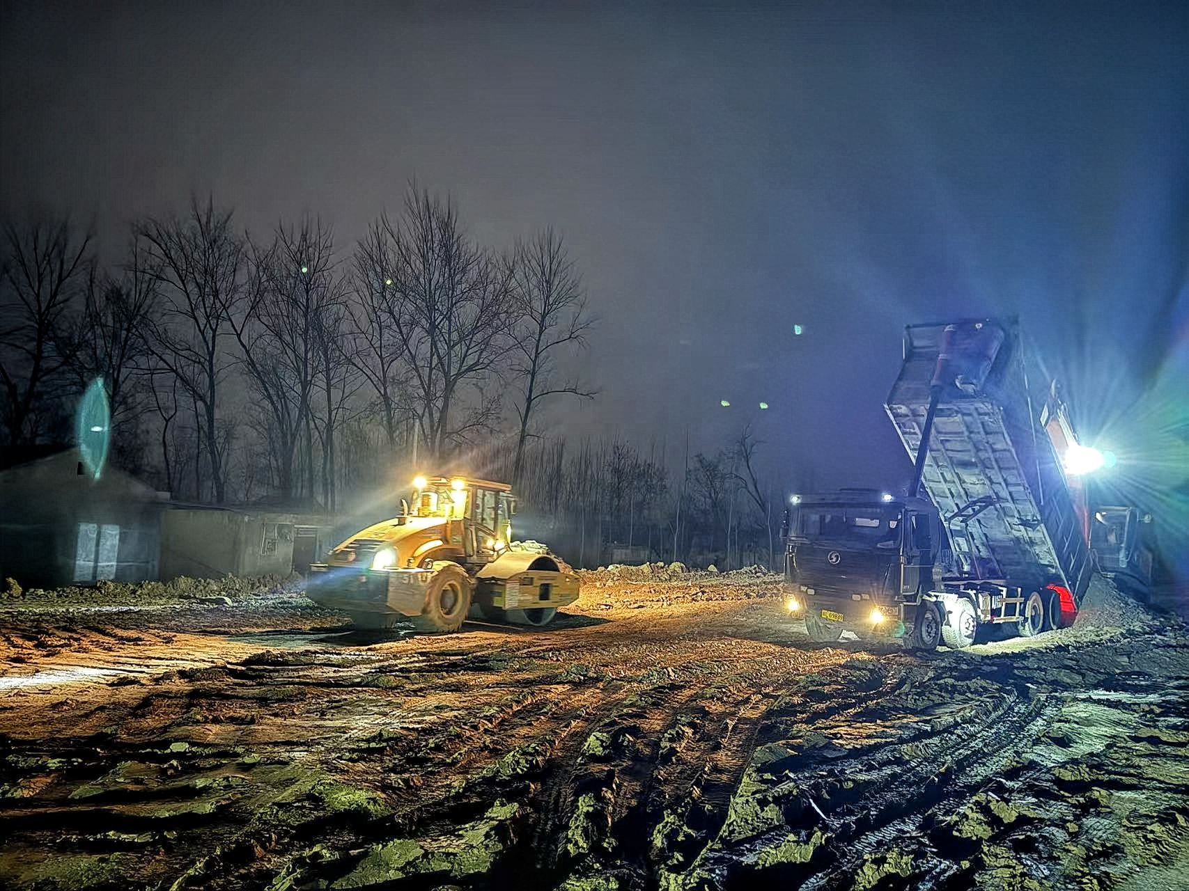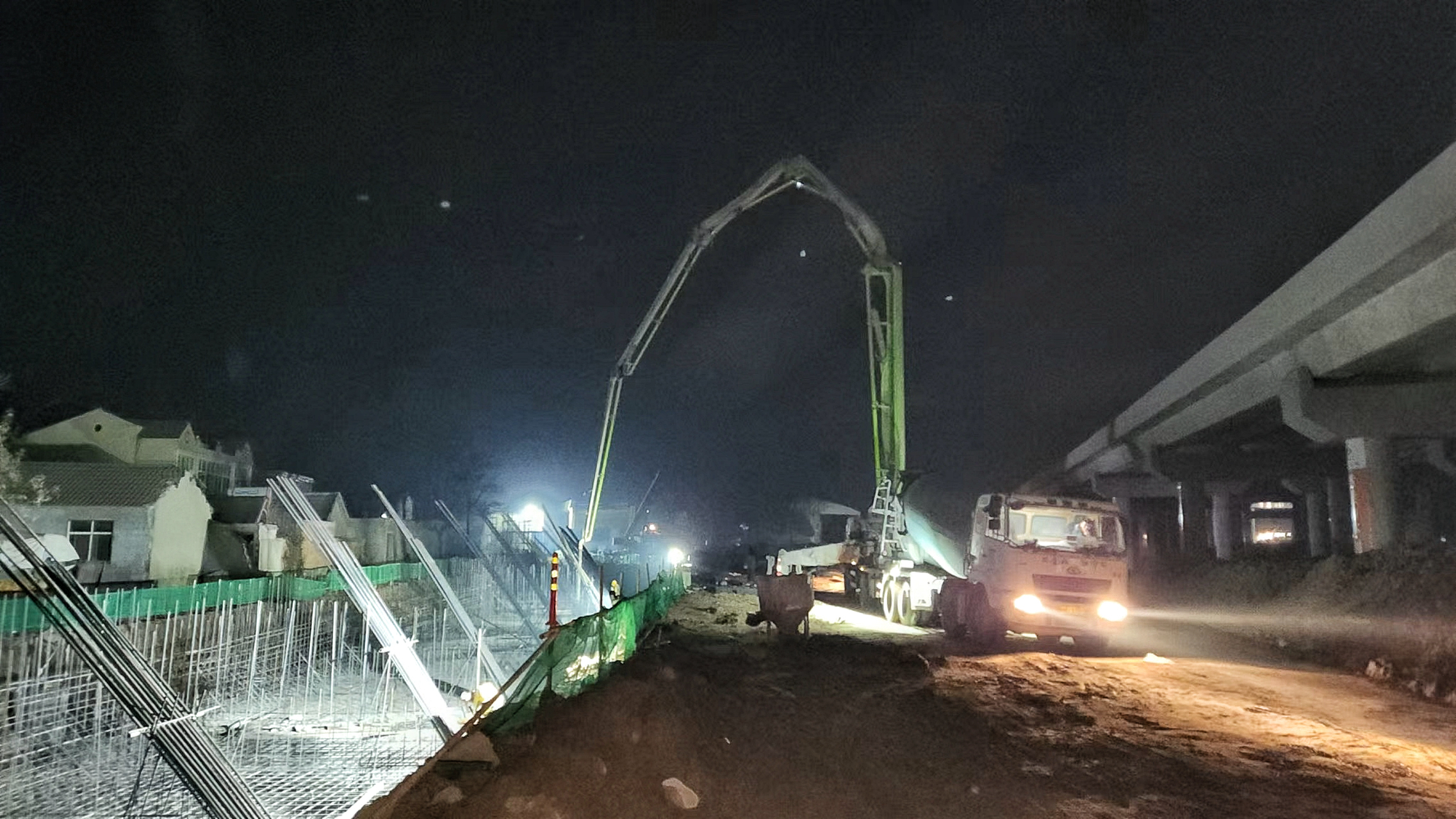 白天,高效協(xié)同、精準施工。施工現(xiàn)場橋梁區(qū)鋼筋工、澆筑工等作業(yè)工人忙碌身影穿梭其中,路基區(qū)機械轟鳴,一臺臺運土車、壓路機、平地機穿梭其中,全體參建者都爭分奪秒搶工期,加班加點趕進度,現(xiàn)場呈現(xiàn)出一派大干快上的繁忙景象。