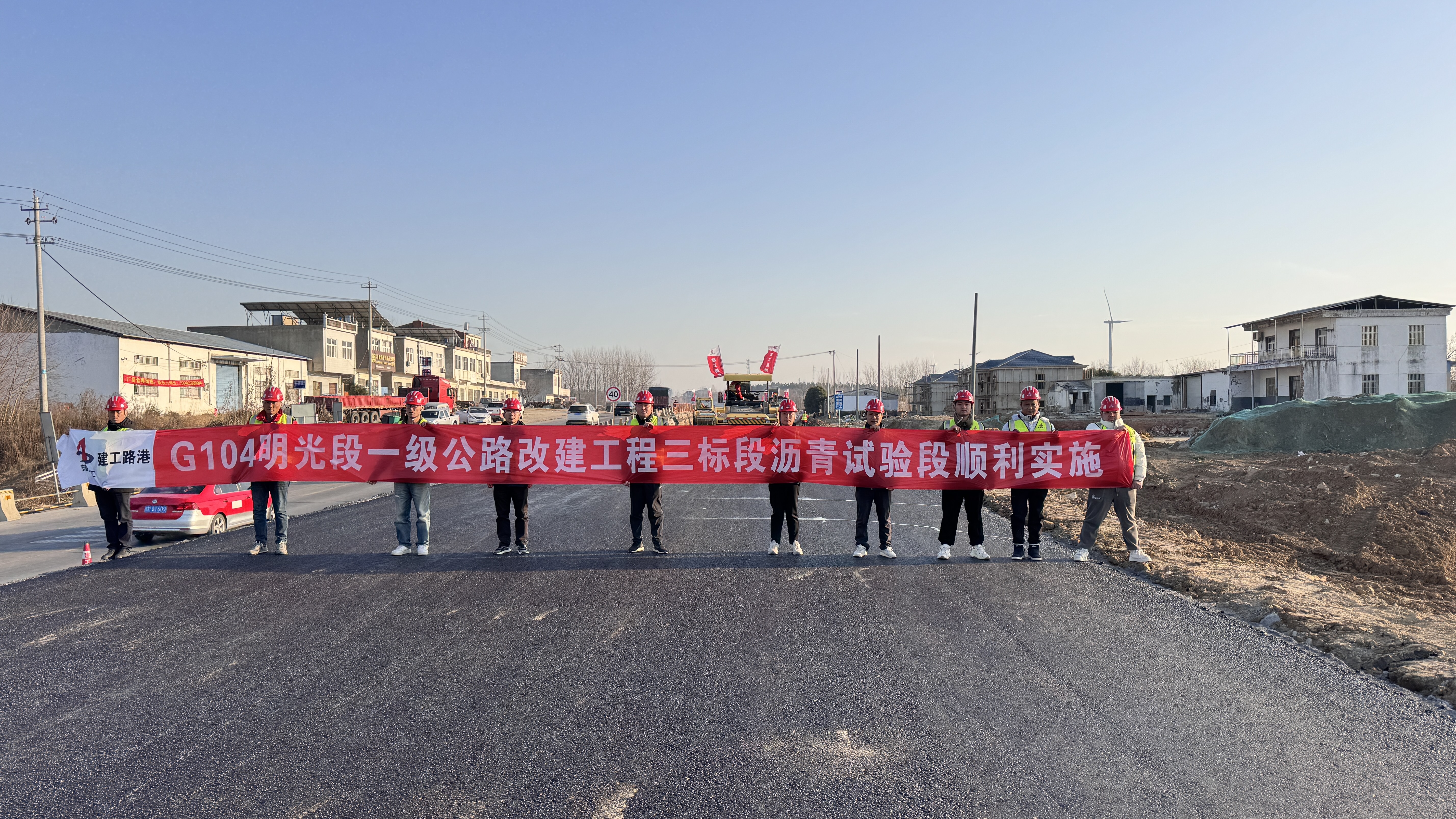 12月15日下午,建工路港G104明光段一級(jí)公路改建工程三標(biāo)段順利完成瀝青試驗(yàn)段攤鋪,成為全線四個(gè)標(biāo)段中首個(gè)開展此項(xiàng)工作的項(xiàng)目。
