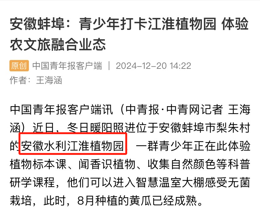 近日,安徽水利江淮植物園著力推動(dòng)農(nóng)文旅深度融合,開(kāi)展豐富的研學(xué)旅游等活動(dòng),受到中國(guó)青年報(bào)等主流媒體關(guān)注報(bào)道。
