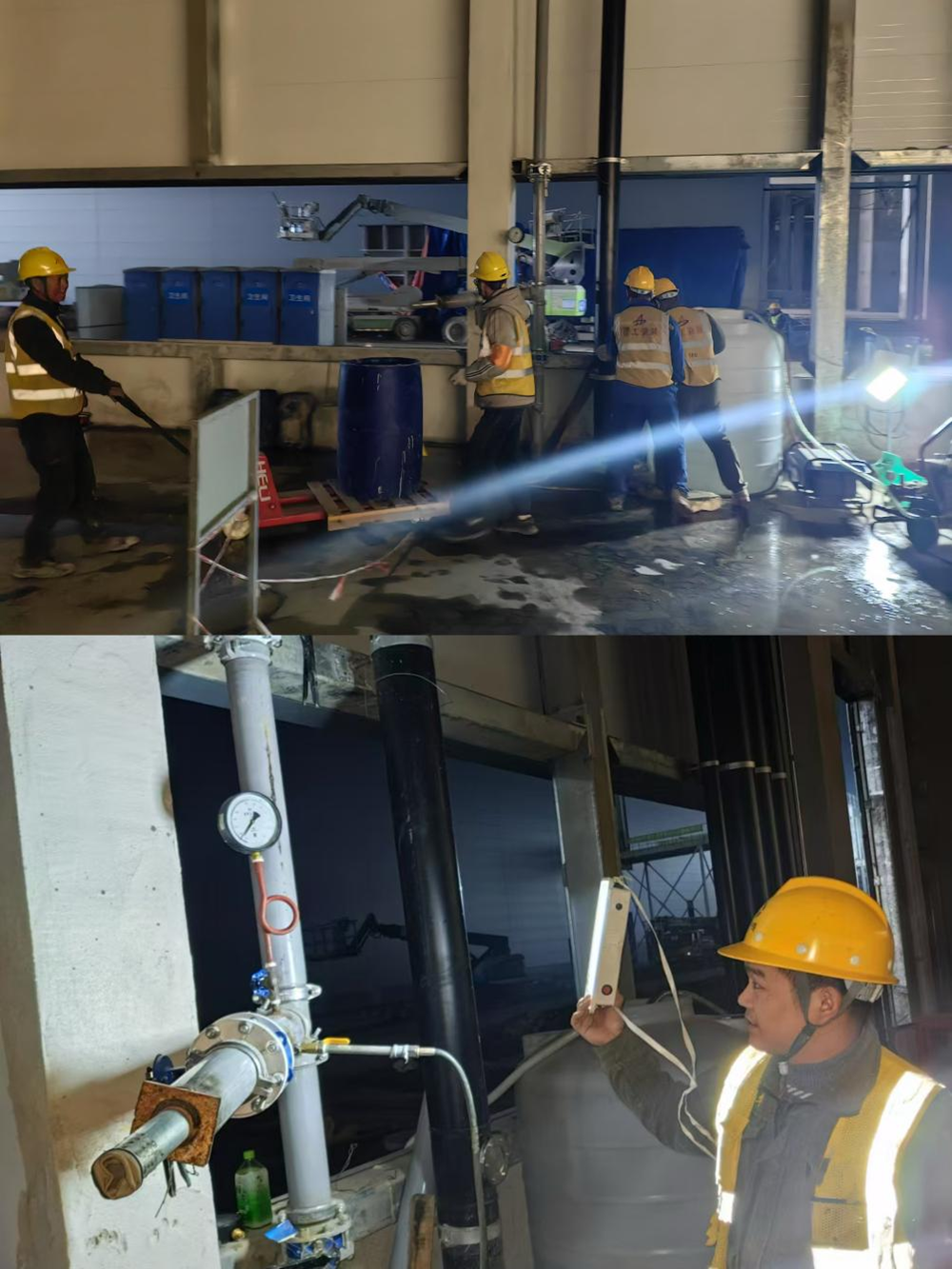 目前,車間一、車間四各給排水、消防及動(dòng)力管道系統(tǒng)已基本貫通,具備試壓條件。為提高管道試壓效率,項(xiàng)目部針對(duì)制約試壓進(jìn)度的材料缺口、探傷檢測(cè)、設(shè)計(jì)變更等問題,積極組織召開各專業(yè)施工專題會(huì)逐一落實(shí)解決,整體試壓工作正在穩(wěn)步向前推進(jìn),各系統(tǒng)試壓工作正按計(jì)劃有條不紊進(jìn)行中。